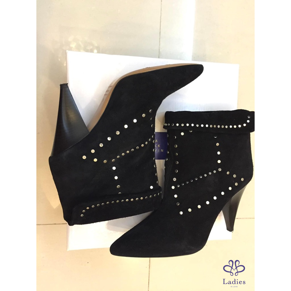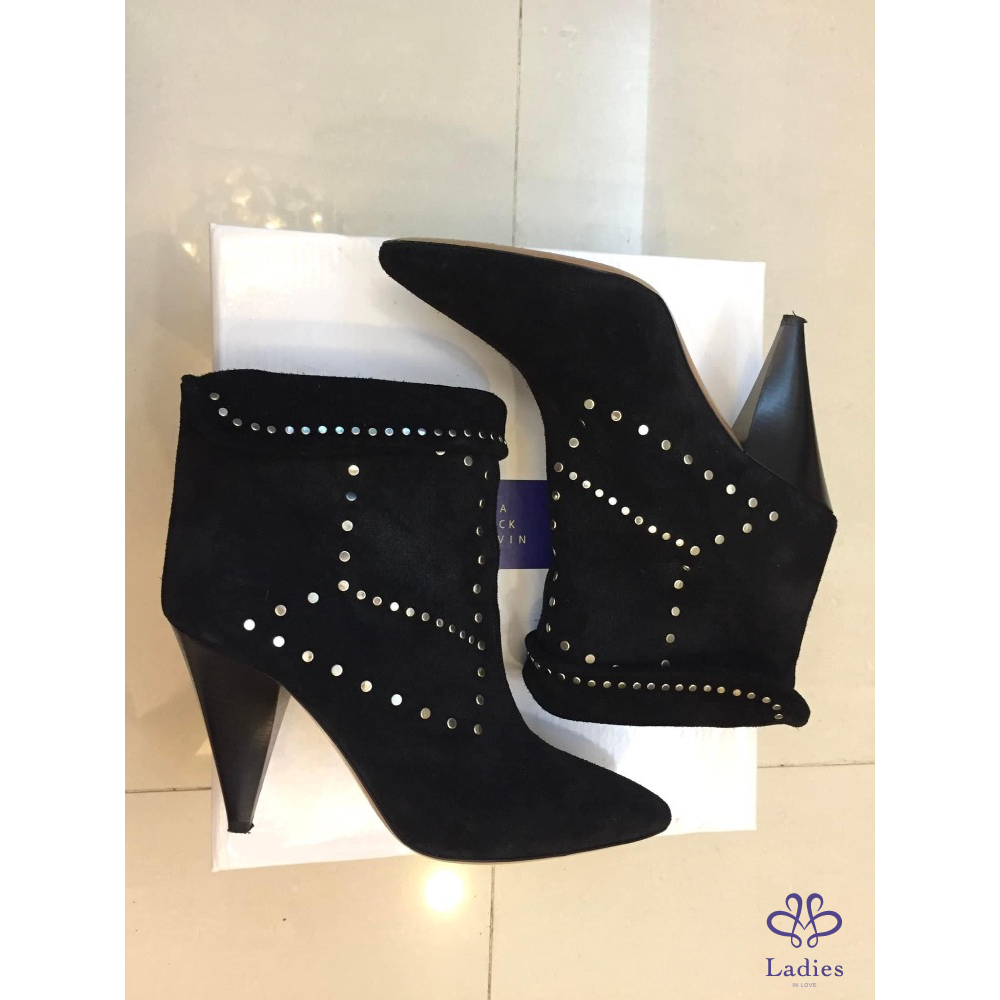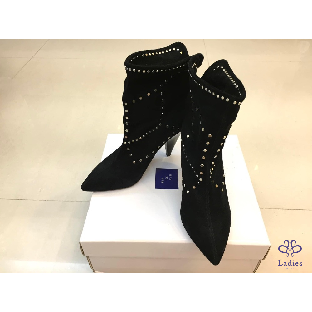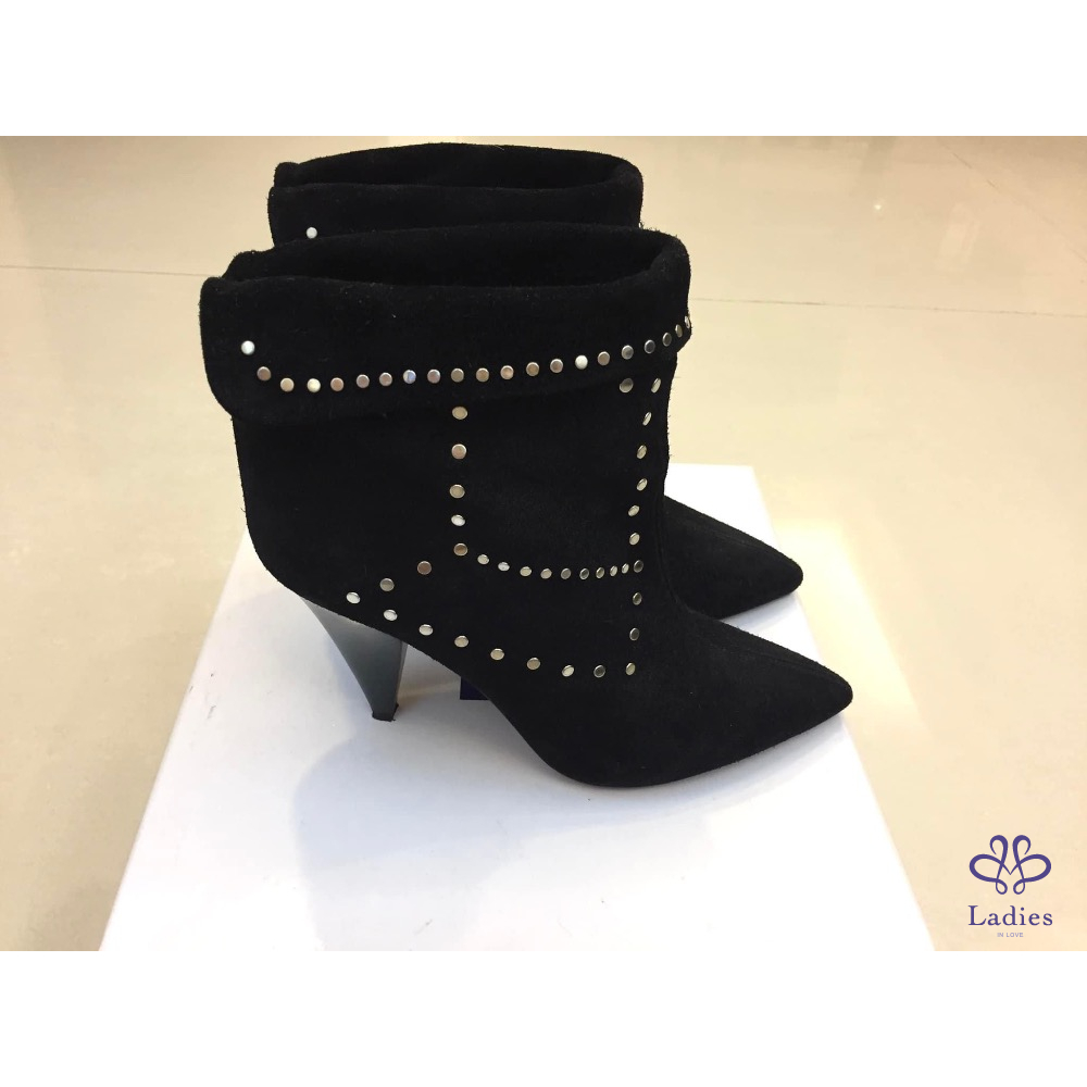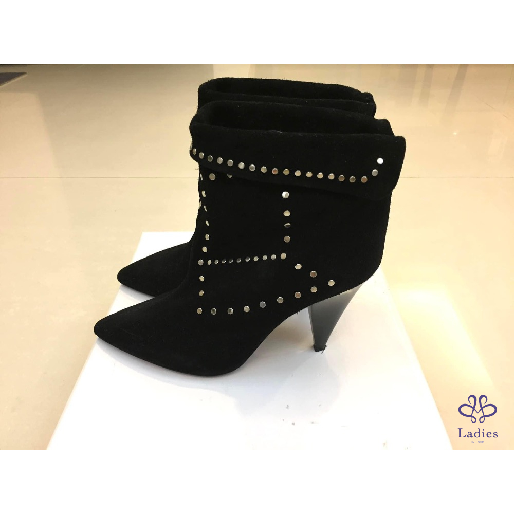 法國設計師品牌ISABELMARANT黑色麂皮卯釘短靴 購於專櫃購價約$31000穿過一次尺寸38跟高9公分版正常