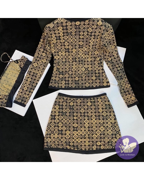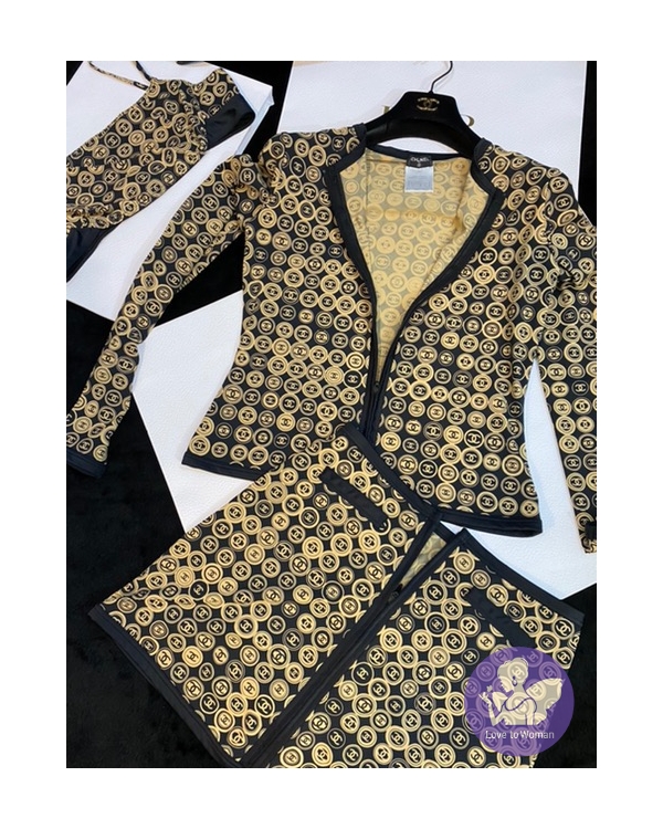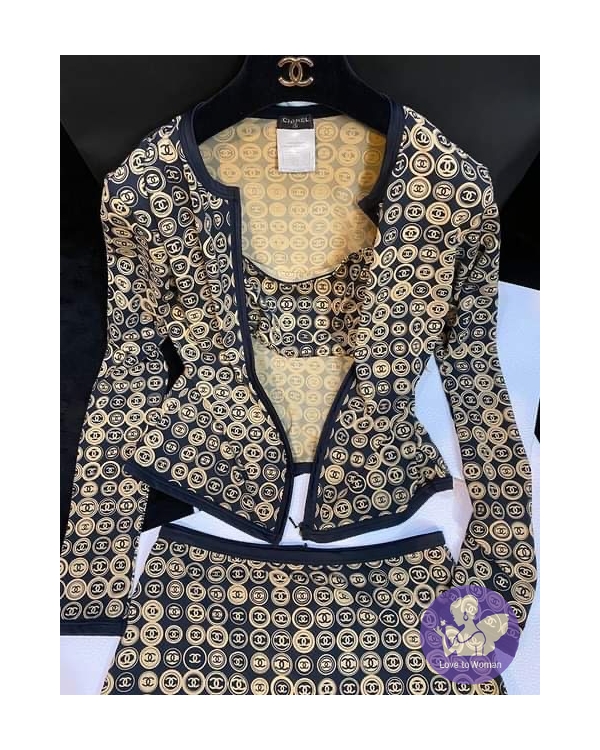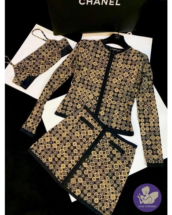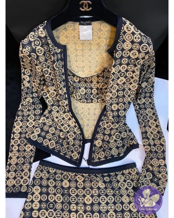 首頁 精品服飾 CHANEL經典黑駝色 CC logo 滿版海灘衣泳衣 休閒運動服 #經典色雙C滿版CClogo
