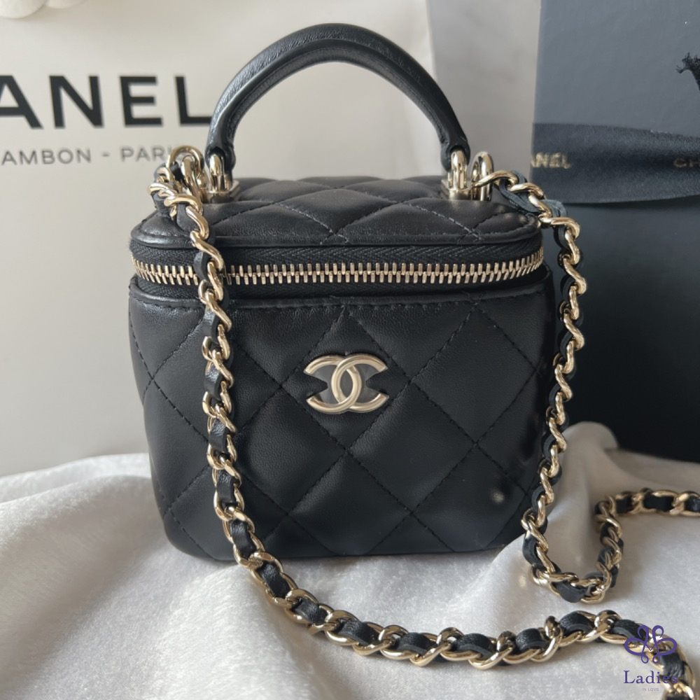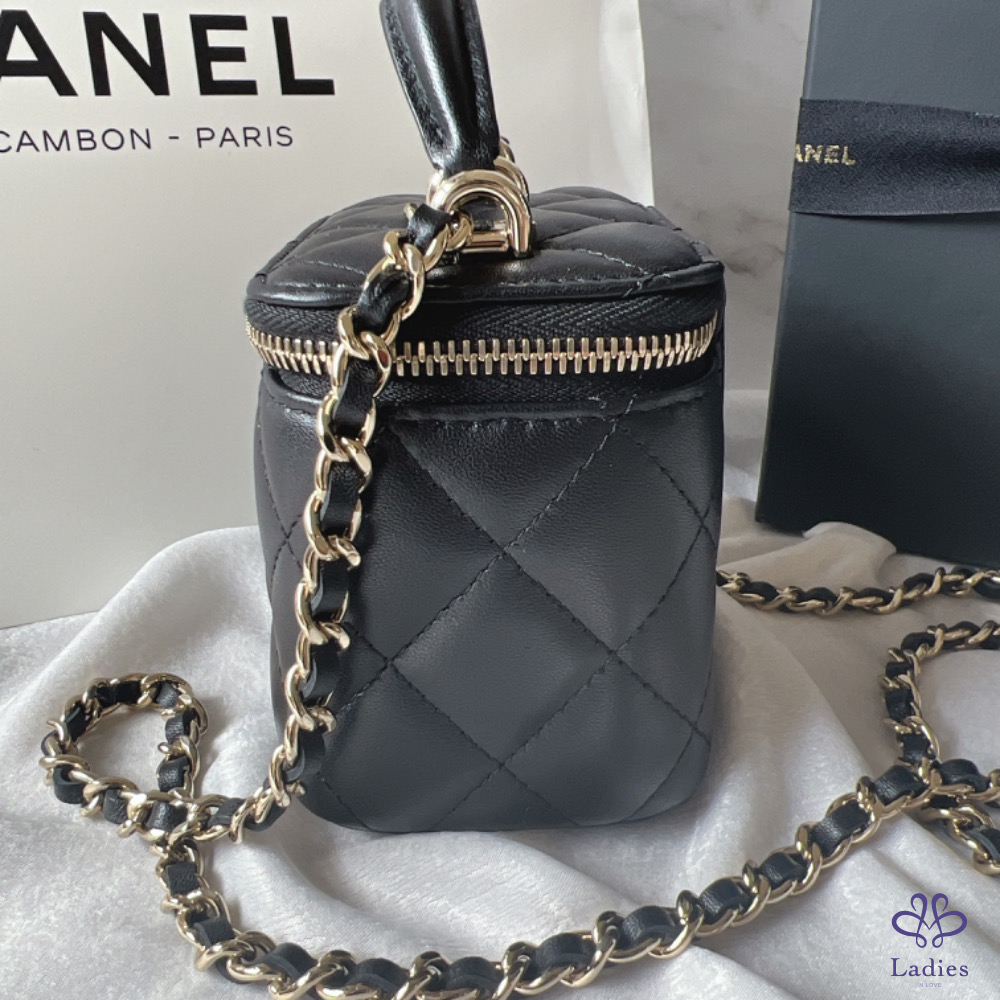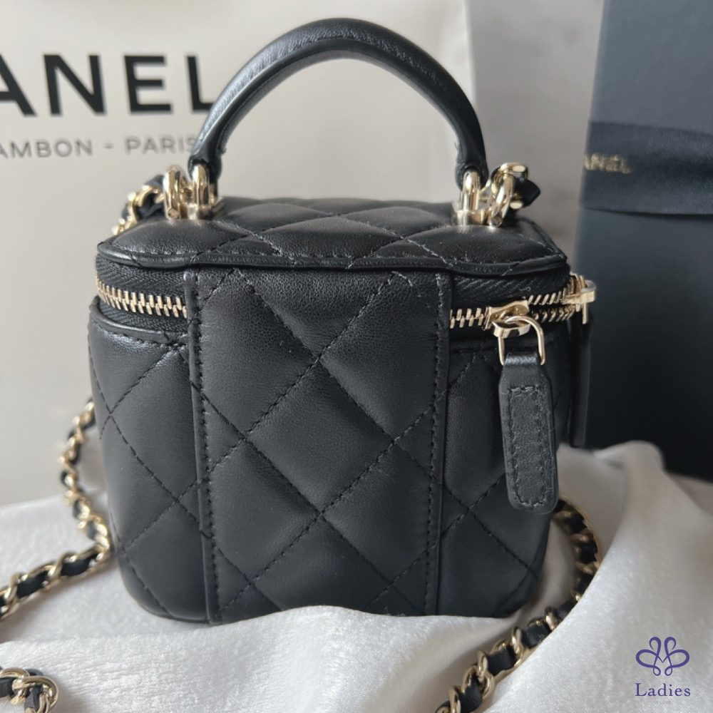 CHANEL香奈兒 Mini手柄小方盒 小羊淡金(義大利購證x全配)