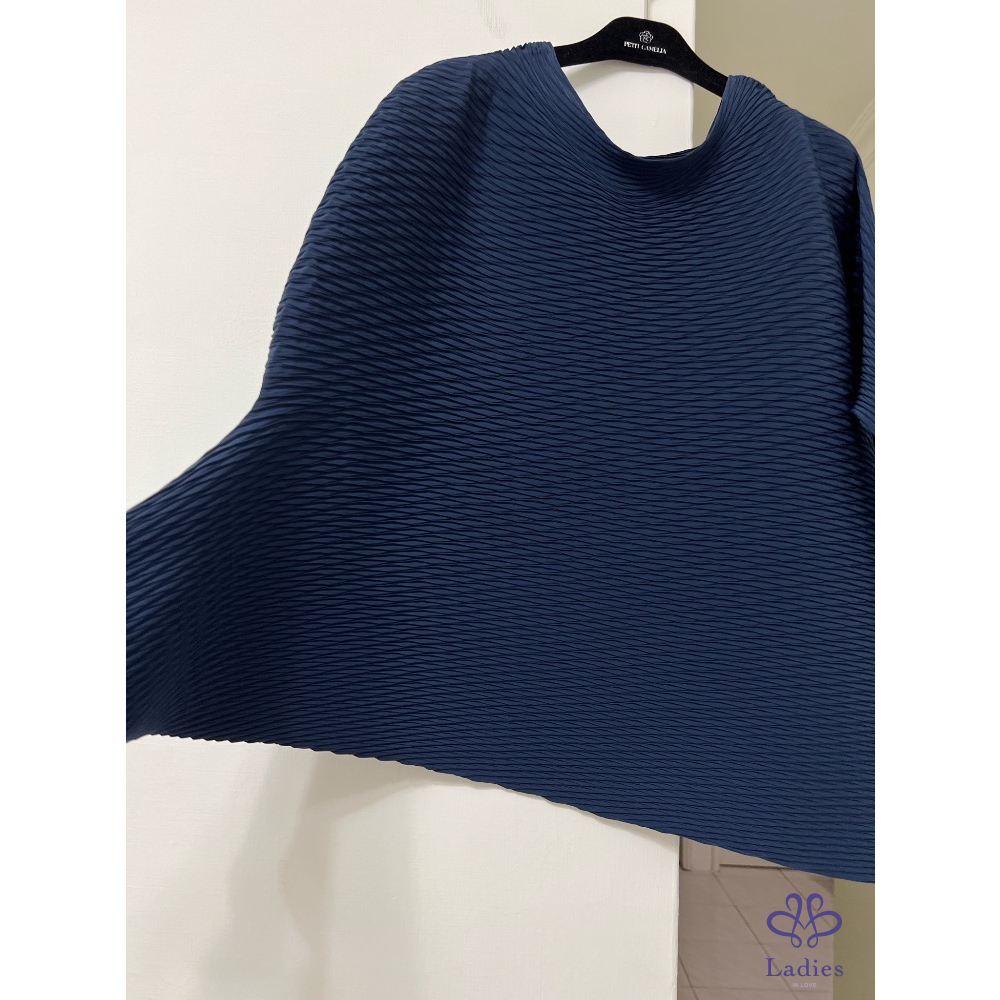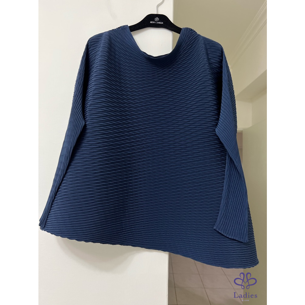 售三宅一生ISSEY MEYAKE 主線魚鱗藍色皺褶造型上衣,2022年1月款,材質很輕柔更舒適,當然價格也較貴,上身非常有氣質;