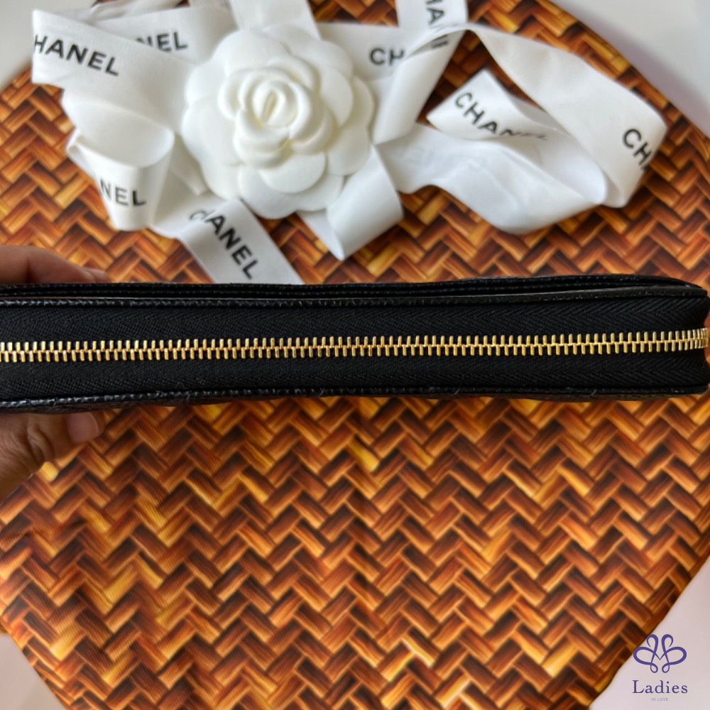 售 離櫃新 經典 Chanel 荔枝皮革 經典拉鍊皮夾