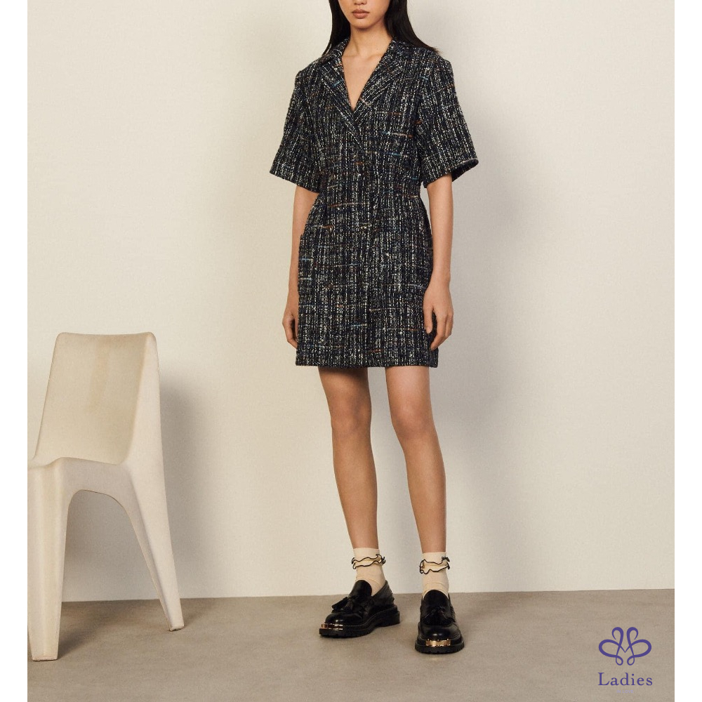 首頁 精品服飾 SANDRO 小香風 星空混色粗毛呢洋裝