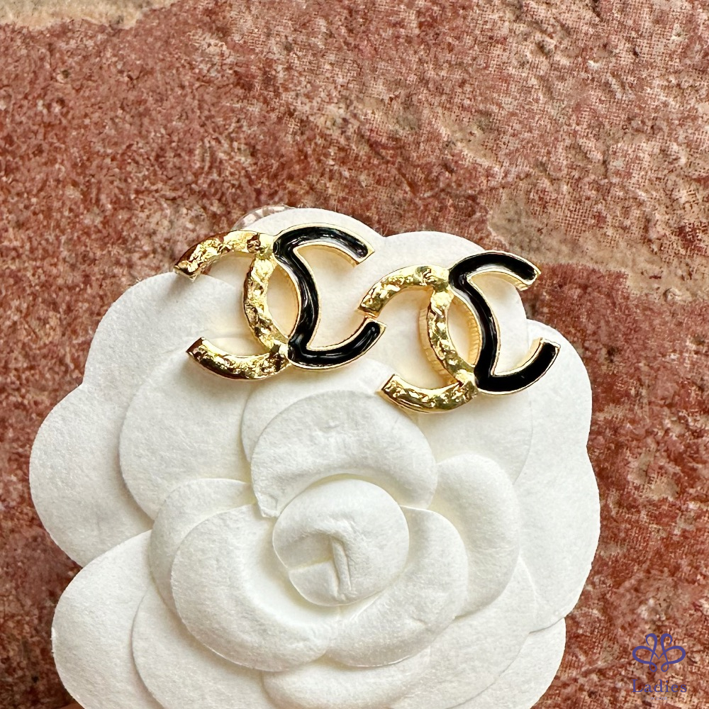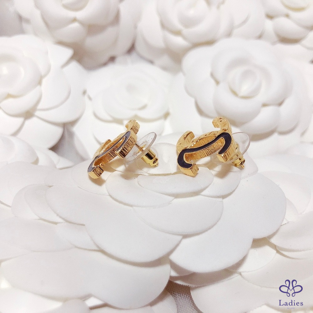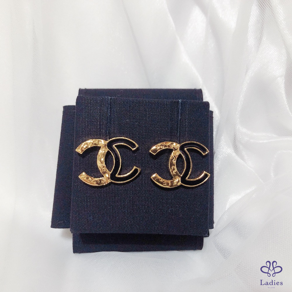 首頁 精品手錶 CHANEL 香奈兒 小香 24C  不規則紋路拼黑色琺瑯 黑金 雙C logo針式 穿式 耳環 全新✨