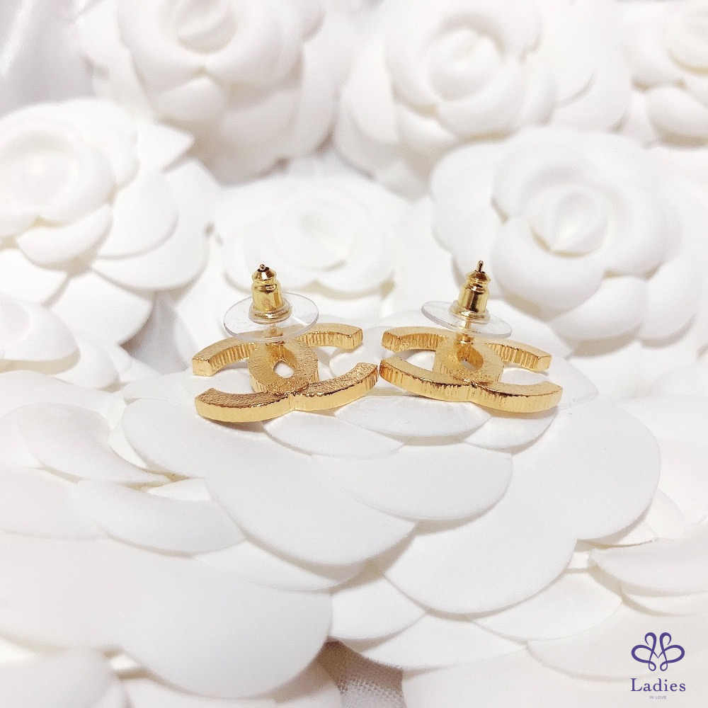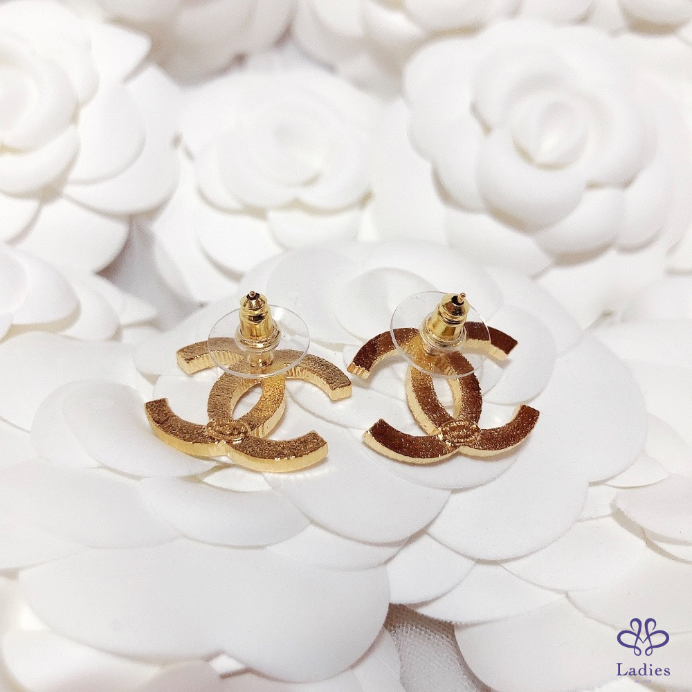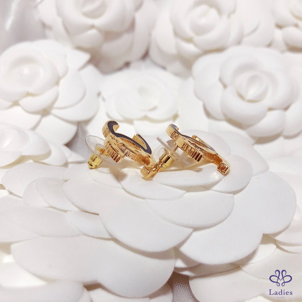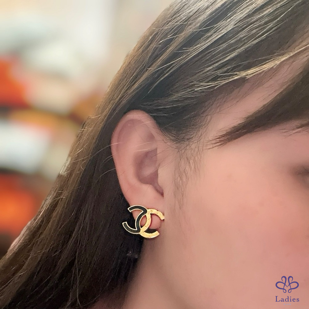 首頁 精品手錶 CHANEL 香奈兒 小香 24C  不規則紋路拼黑色琺瑯 黑金 雙C logo針式 穿式 耳環 全新✨
