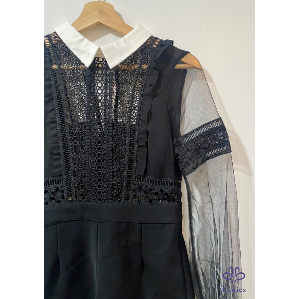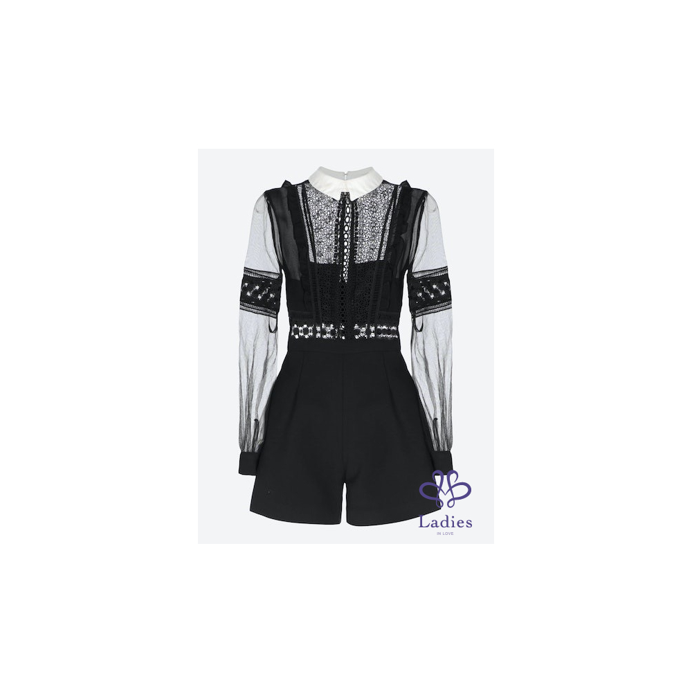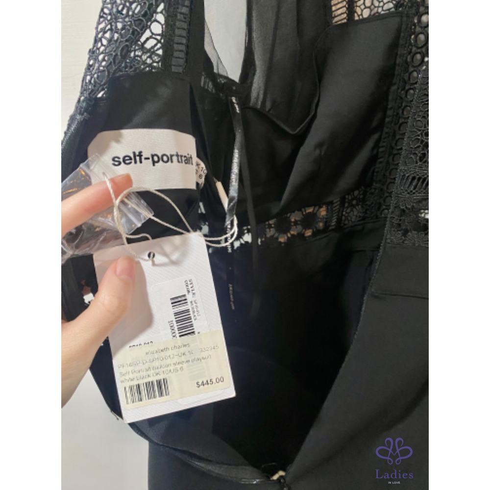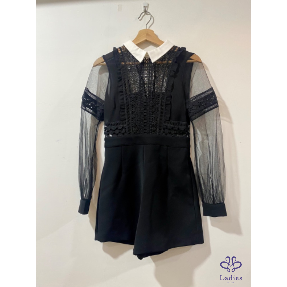 Self Portrait 黑色 透膚網紗幾何簍空連身褲