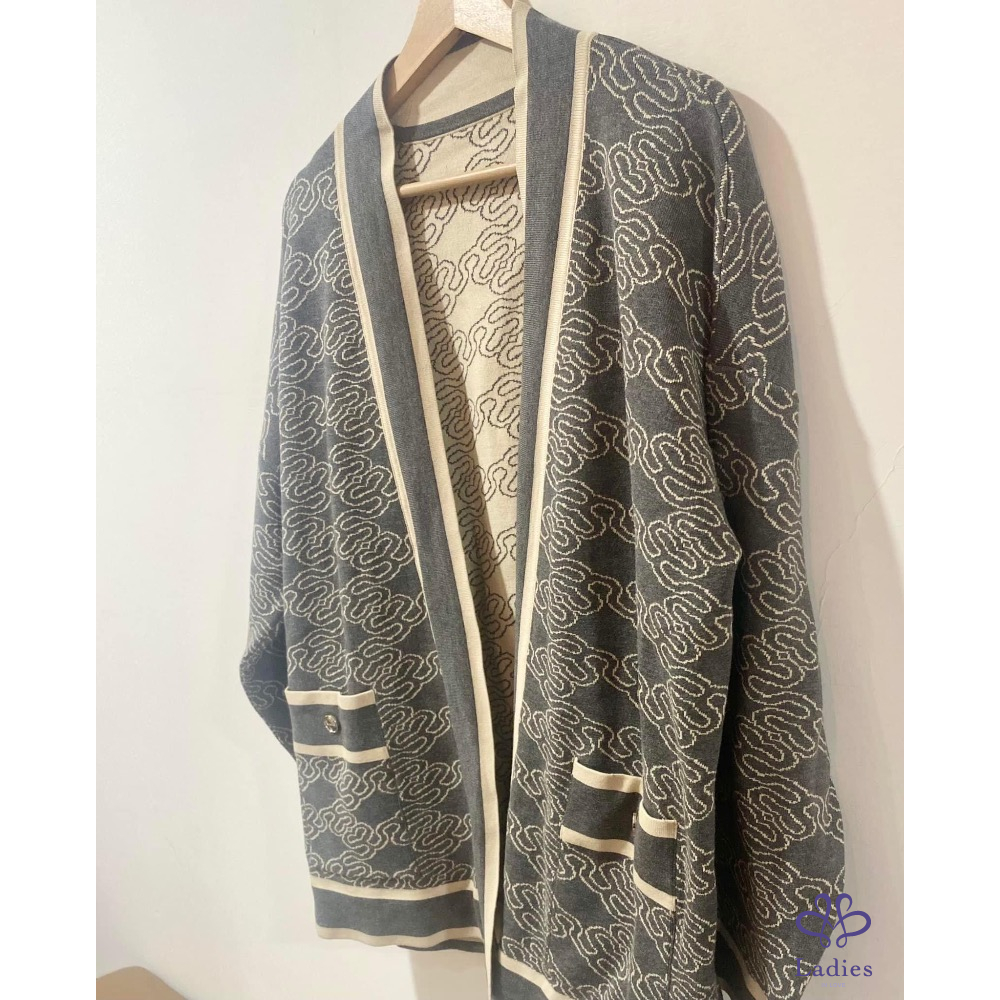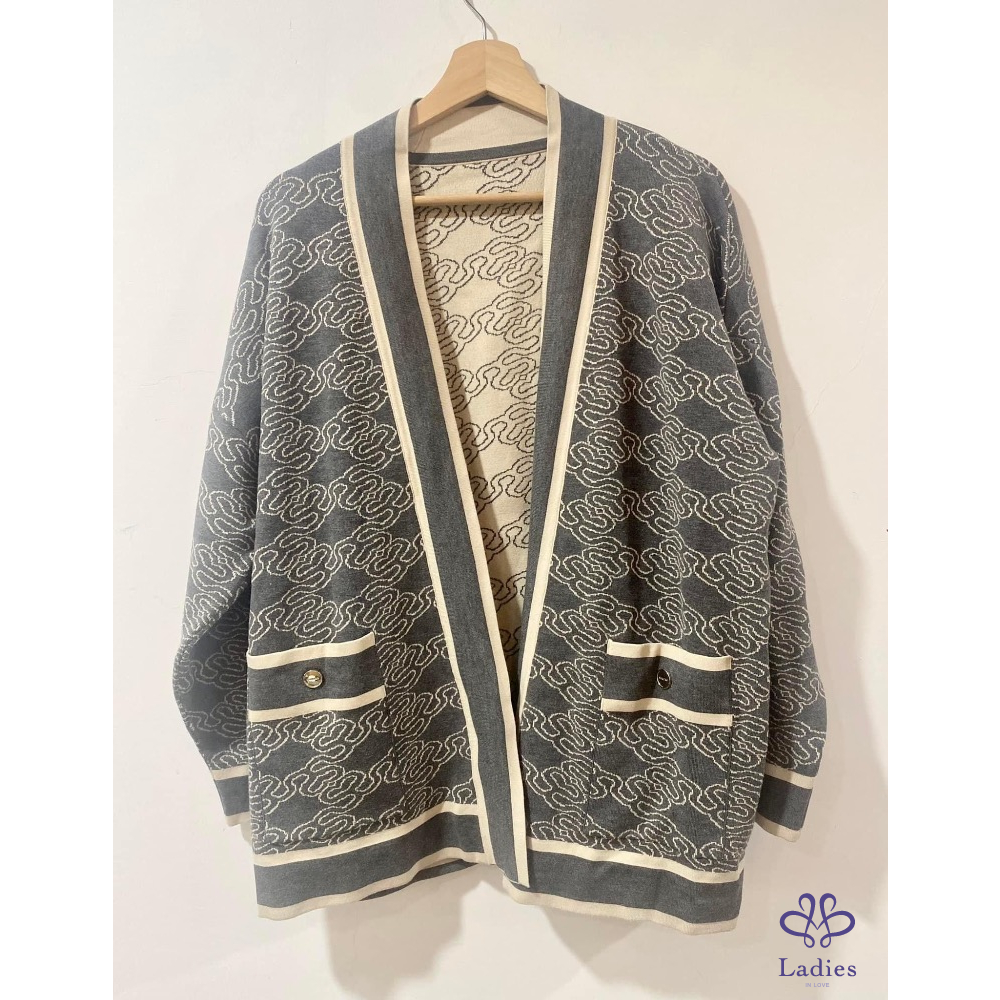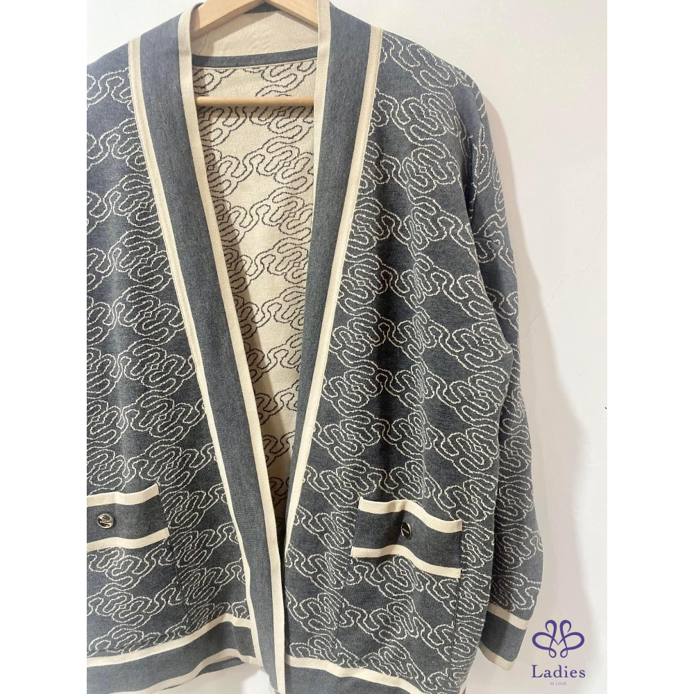 首頁 精品服飾 SANDRO 杏灰色 雙S logo 毛衣開襟外套(雙面穿設計)