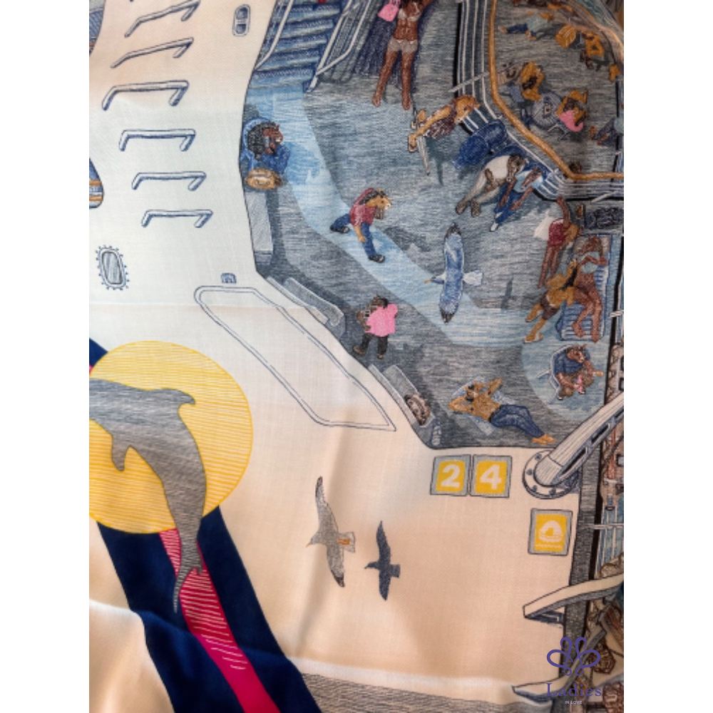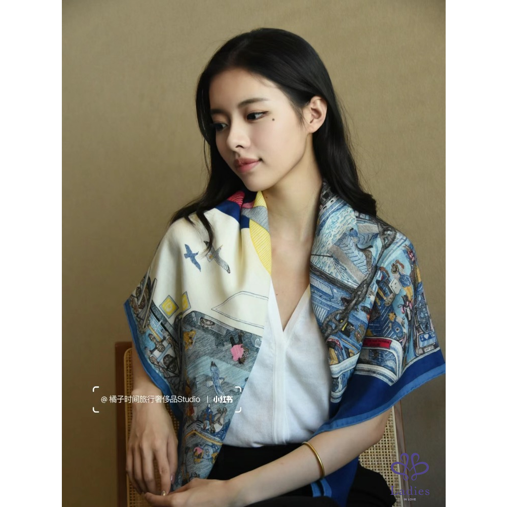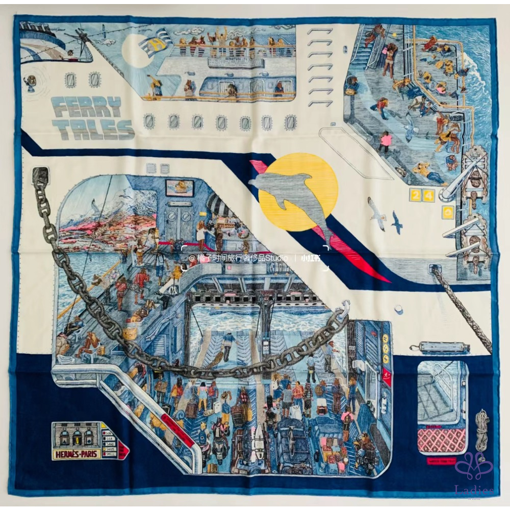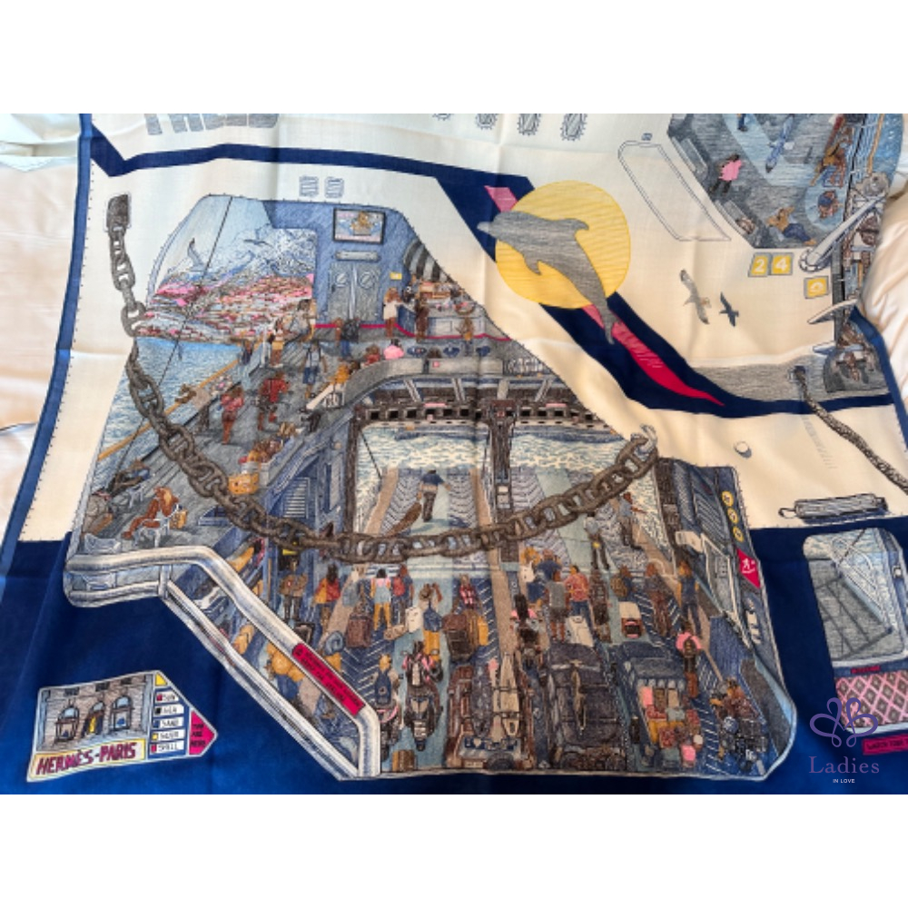 產品信息 Hermes 100x100 cashmere 絲巾 輪渡傳說 藍色款,全新全配 (專櫃價3萬多購入) 這條細節滿滿,從童話故事的角度出發 乘客小馬們逐夢而來,攜家帶眷前往希臘渡假 每個馬兒姿態各異:沐浴陽光、酒吧飲酒、快樂玩耍⋯ 色彩和內容都極為豐富的一條羊絨絲巾 如畫作般的生動栩栩如生,上身也是很美! 附:緞帶、橘盒、橘袋、購證影本去個資 台北新竹可以面交 可郵寄、店到店、宅配