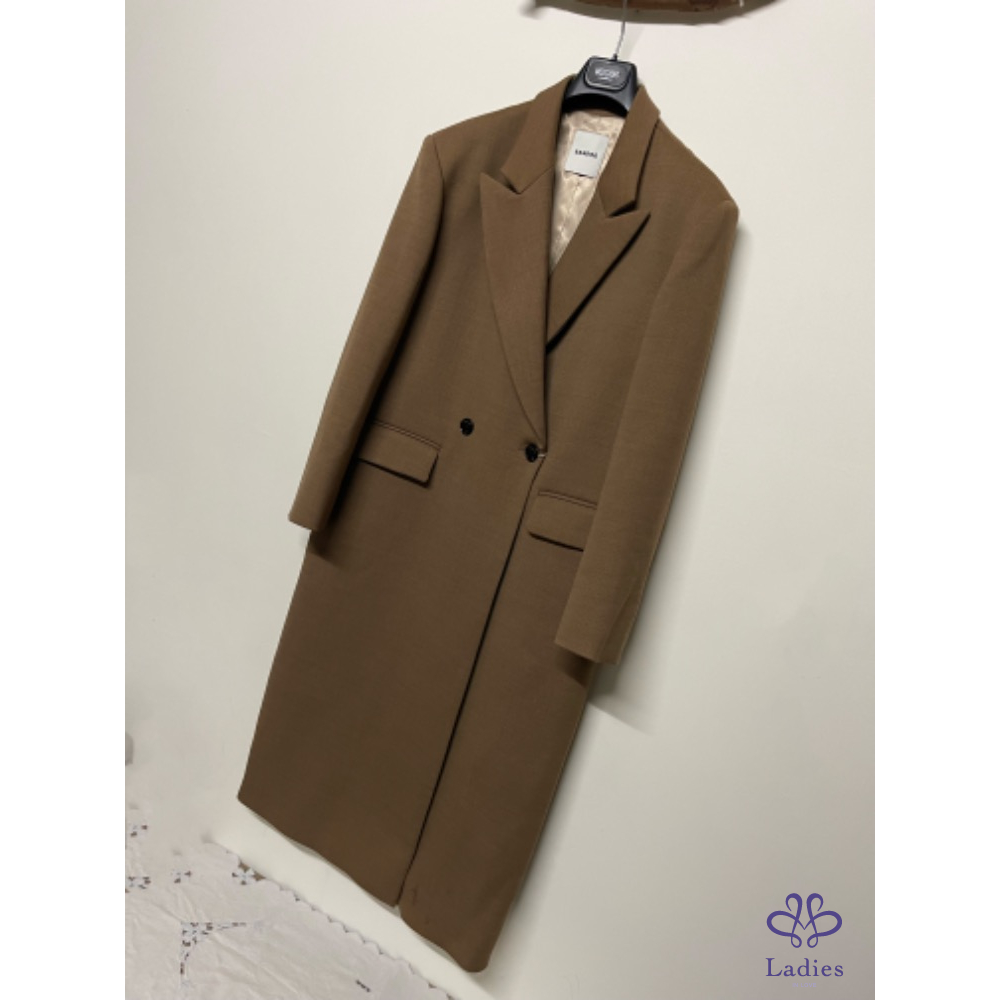 全新Sandro美拉德羊毛混紡長款大衣