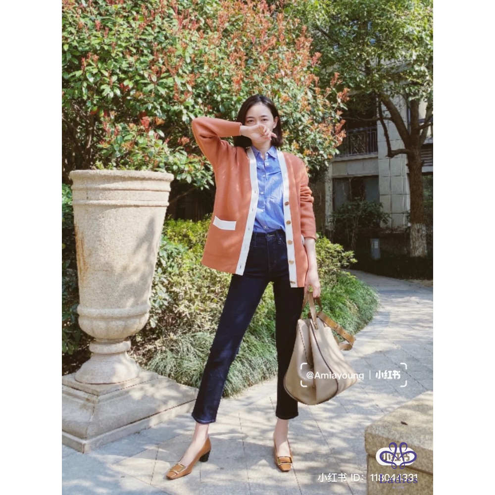 SANDRO 粉棕橘 雙S logo金釦 混羊毛開襟外套