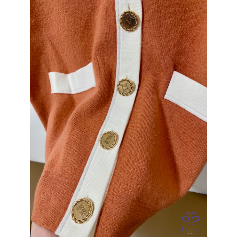 首頁 精品服飾 SANDRO 粉棕橘 雙S logo金釦 混羊毛開襟外套