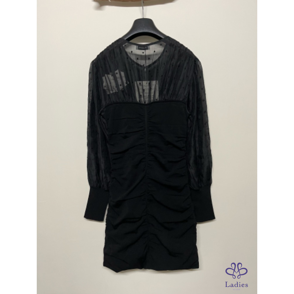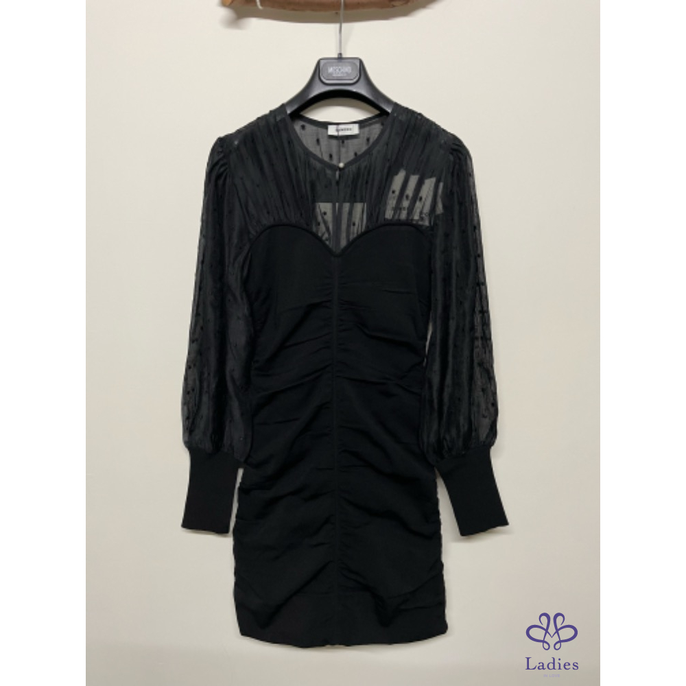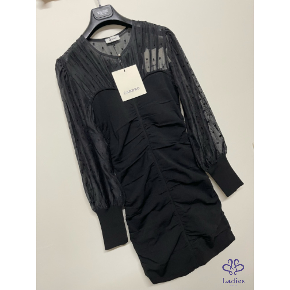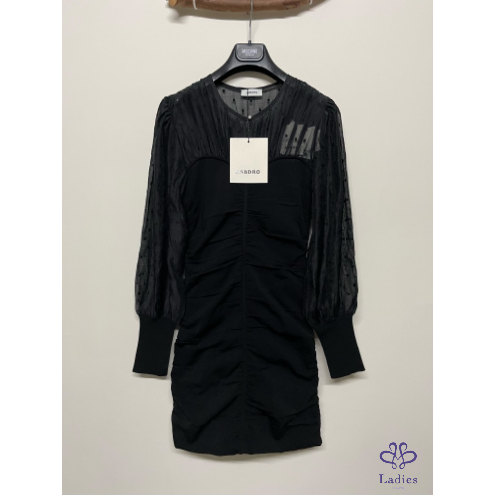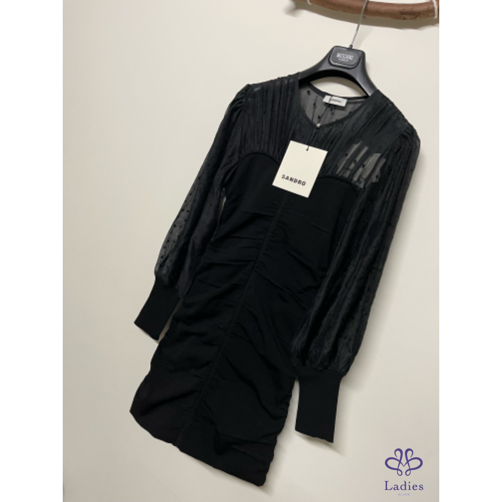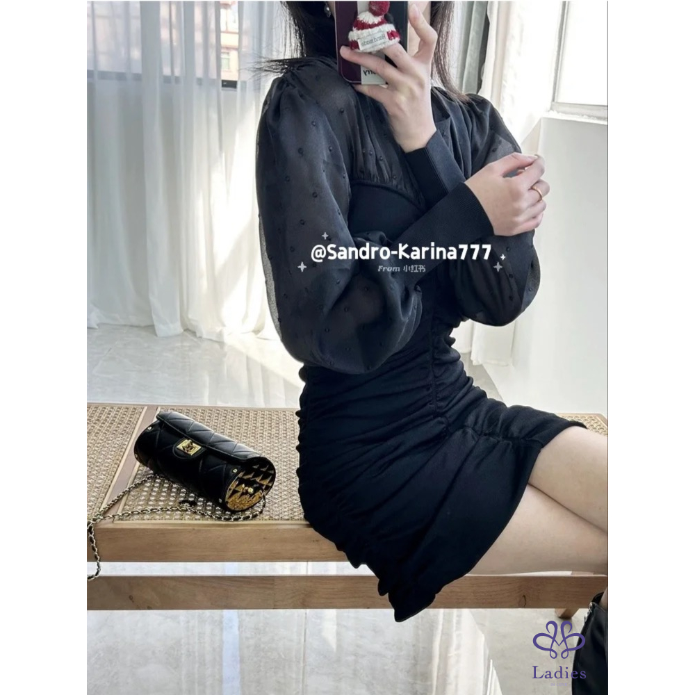 首頁 精品服飾 全新Sandro黑色微透波點泡泡袖連身裙