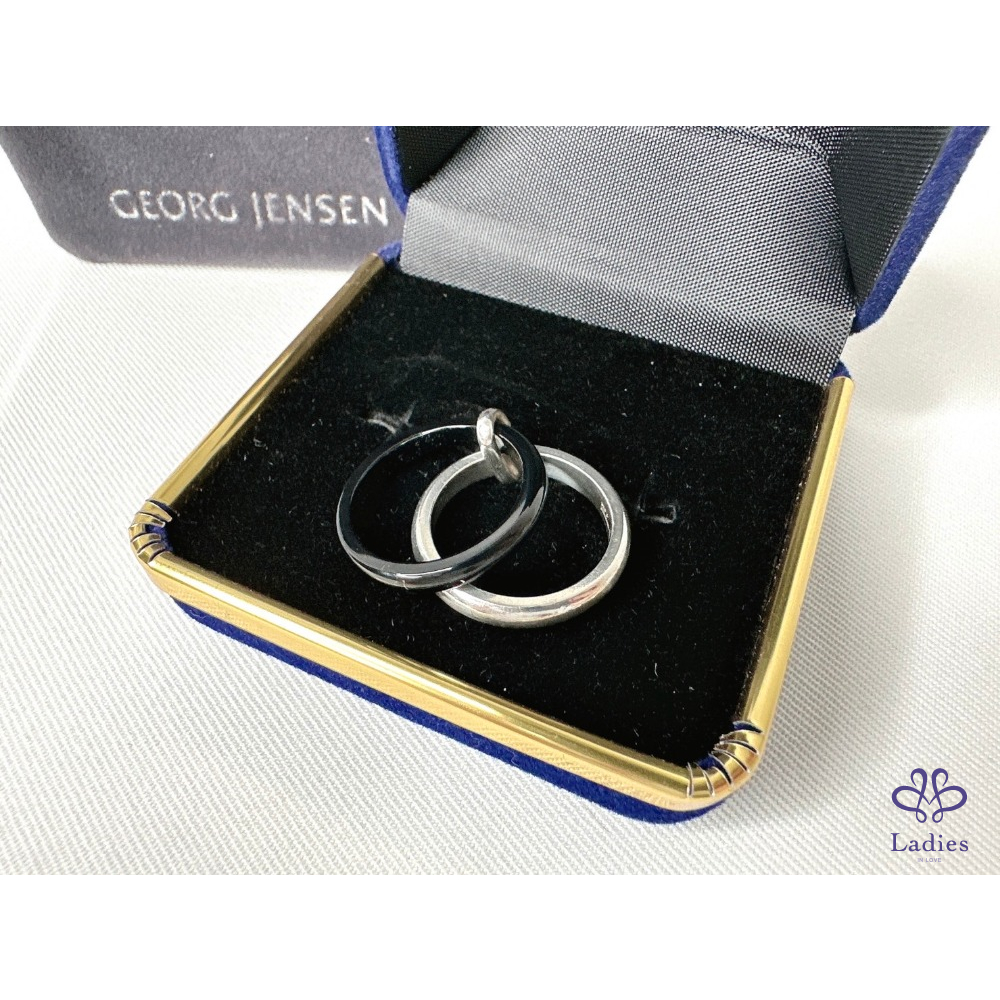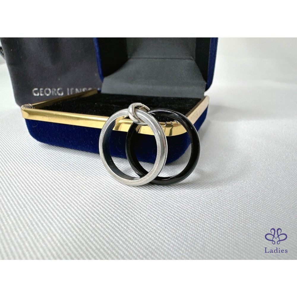 GEORG JENSEN 喬治傑生 木村黑瑪瑙雙環銀戒