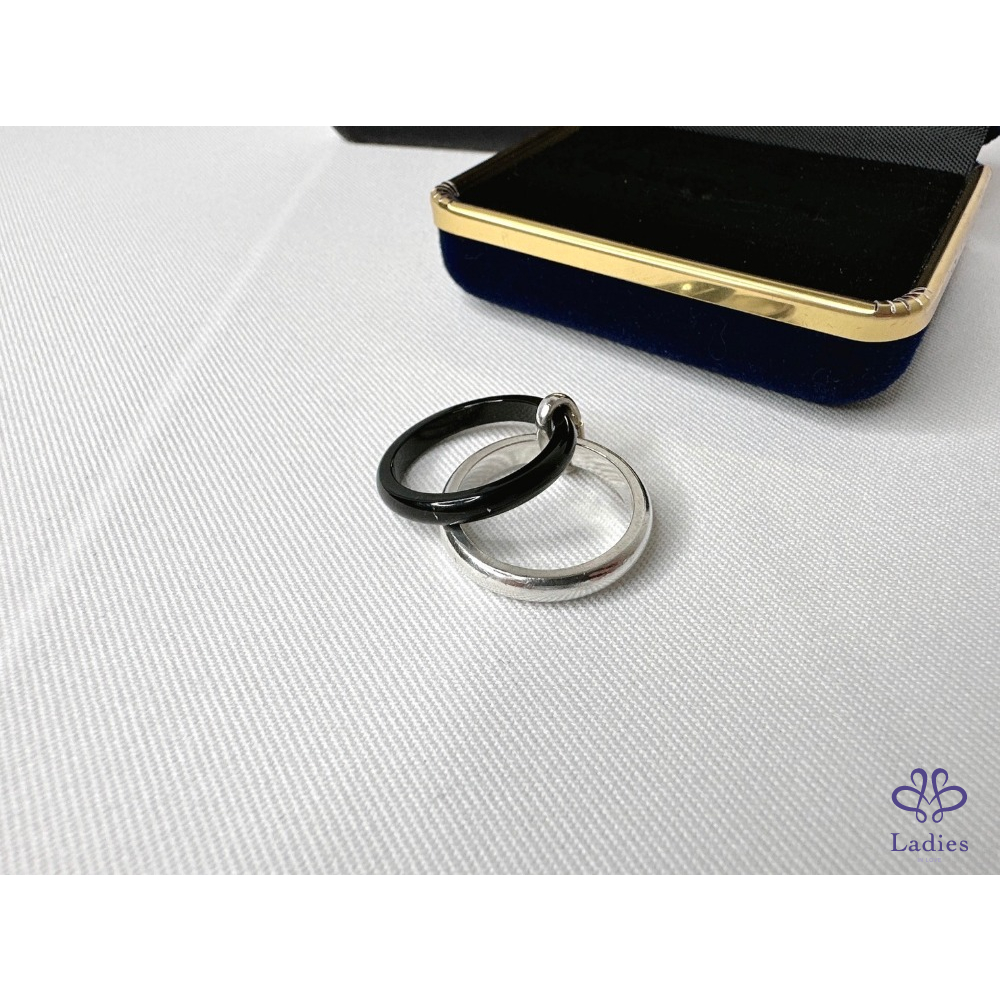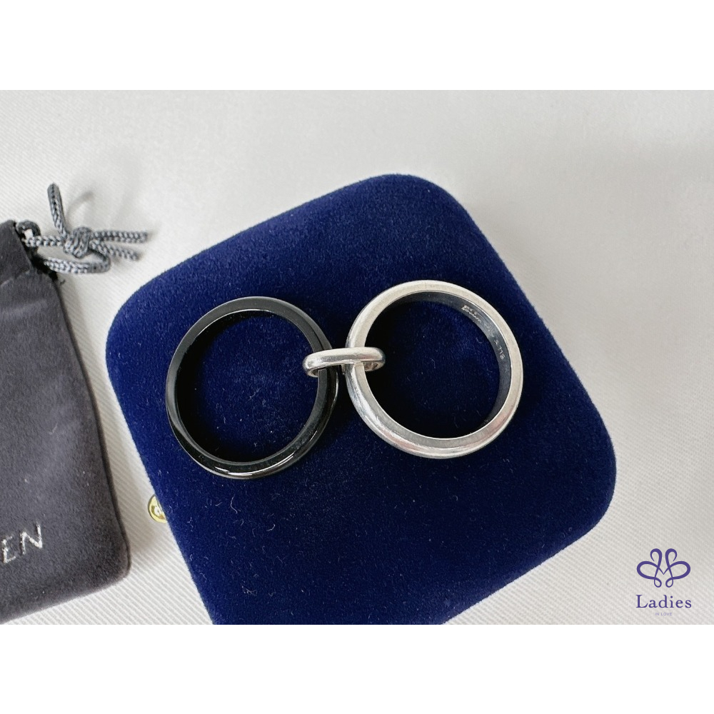 【GEORG JENSEN 喬治傑生 木村黑瑪瑙雙環銀戒】