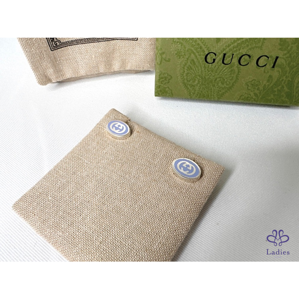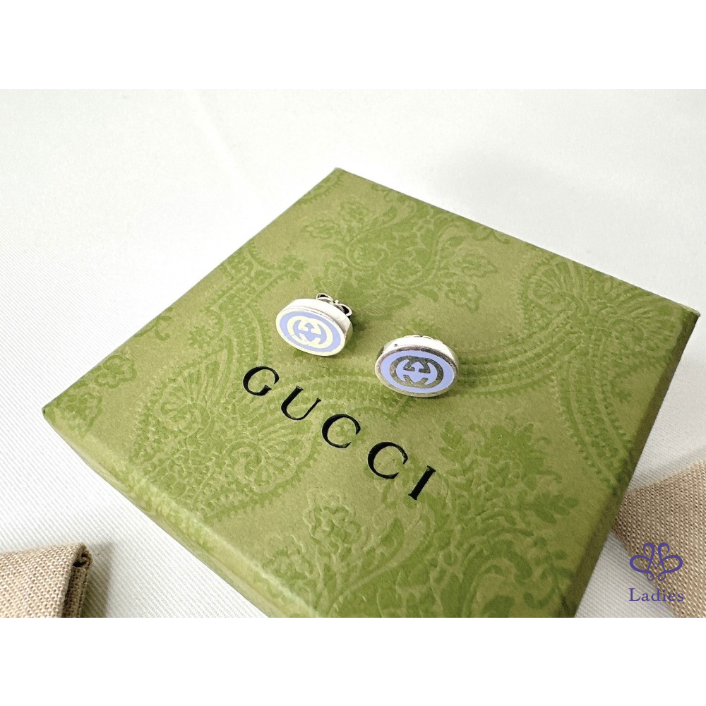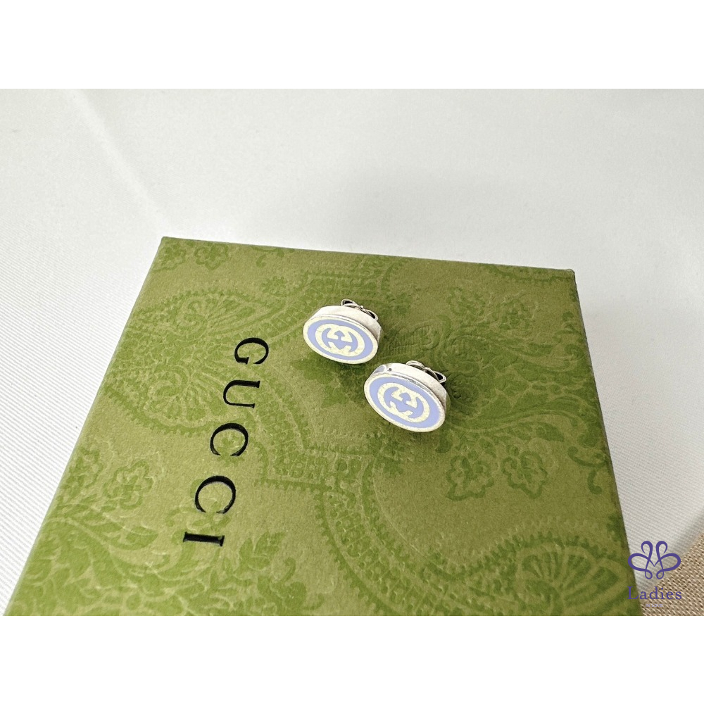【GUCCI INTERLOCKING G琺瑯純銀耳環】