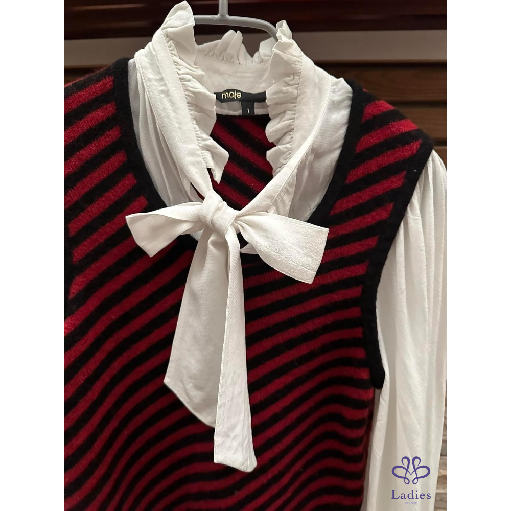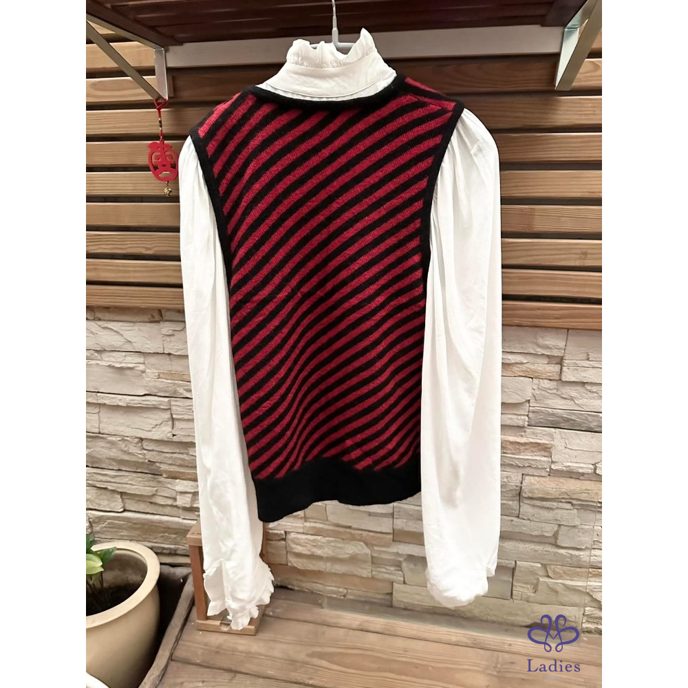 產品信息 ????96新近新,專櫃購買購買多樣忘了價格、查價9050元 ????尺寸1,此款是愛的28定律劇中穿搭照 法式荷葉領,搭配黑紅兩色斜紋毛衣 假兩件穿搭的設計 ????️污損、看洗標可知衣況很新