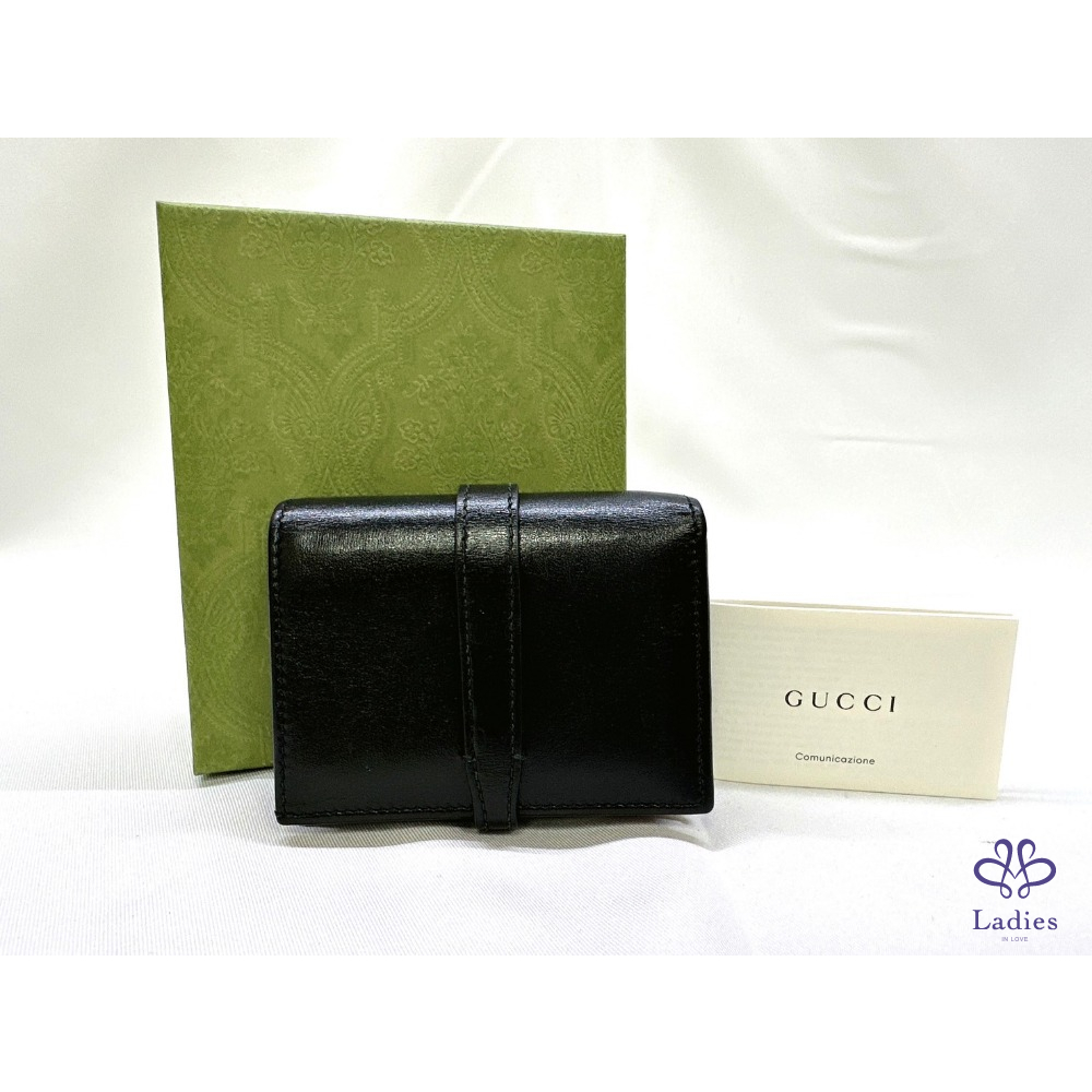 產品信息 【GUCCI JACKIE 1961皮革短夾】 金色的活塞鎖扣細節向1961年面世的原版Jackie手袋致敬 5個卡片夾層 / 2個平口袋 / 1個拉鏈口袋 #五金按扣點有使用退色痕跡照片請檢視 整體包況9成新,二手商品均有正常使用/存放痕跡 型號:645536 尺寸:11x8.5x3cm 附件:原廠盒、說明書