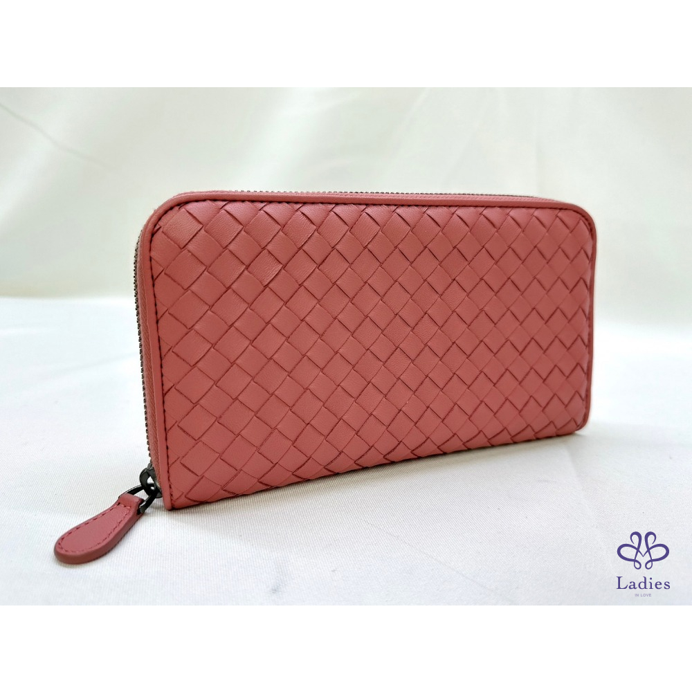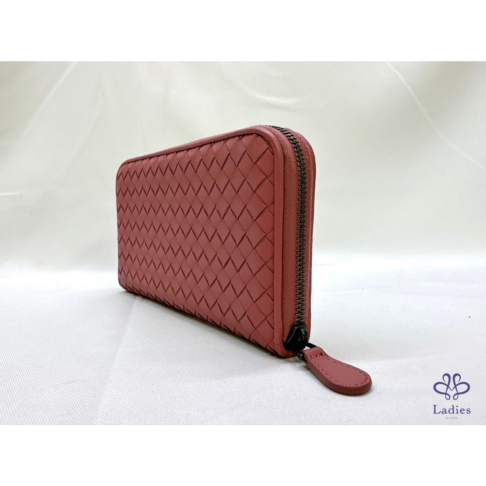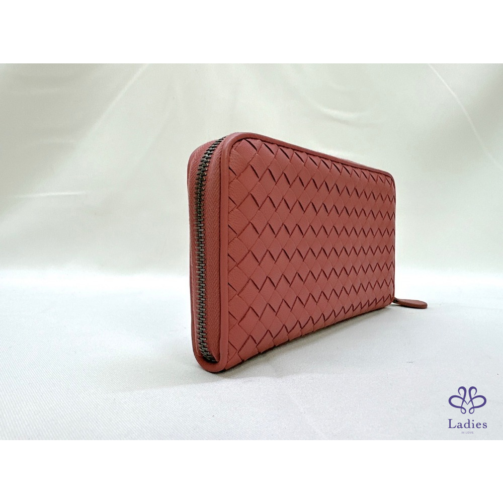 BV 編織鮭粉八卡拉鍊長夾