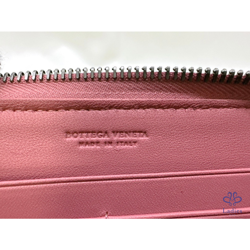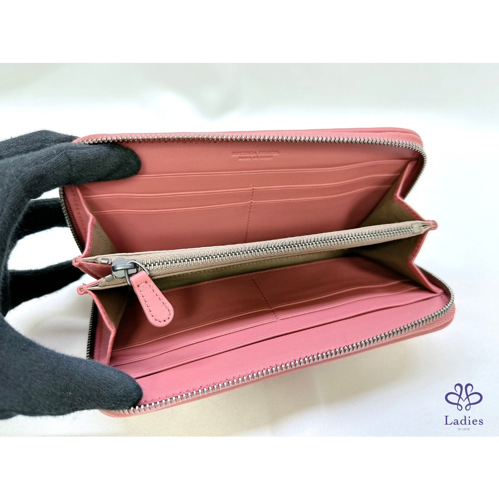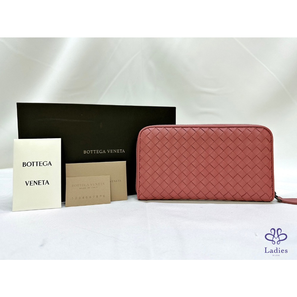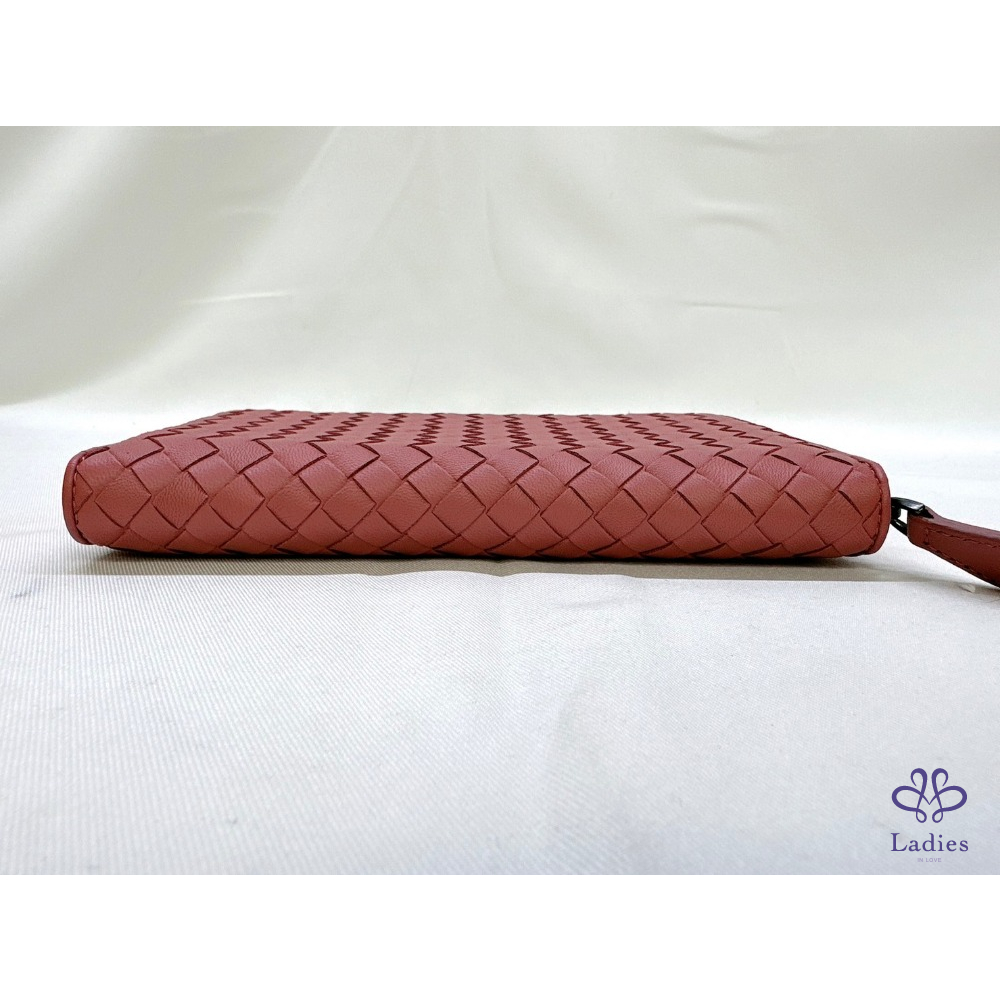 BV 編織鮭粉八卡拉鍊長夾
