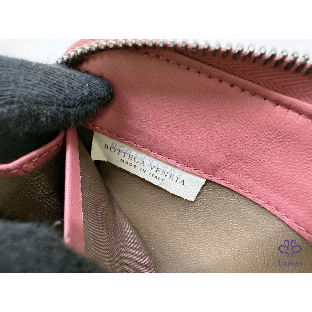 首頁 精品包包 BV 編織鮭粉八卡拉鍊長夾
