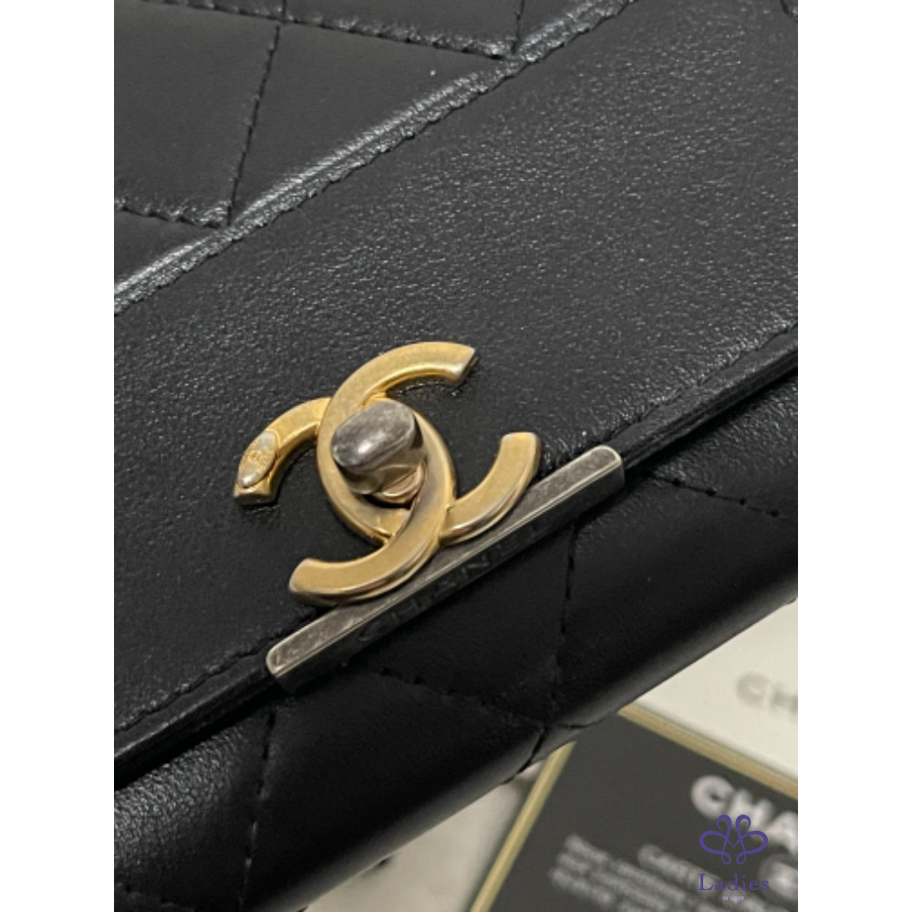首頁 精品包包 全新CHANEL小牛皮菱格紋轉扣三折短夾