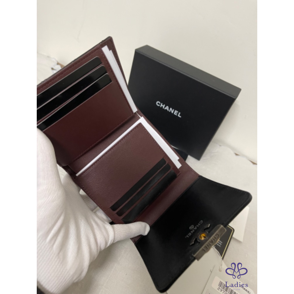 全新CHANEL小牛皮菱格紋轉扣三折短夾