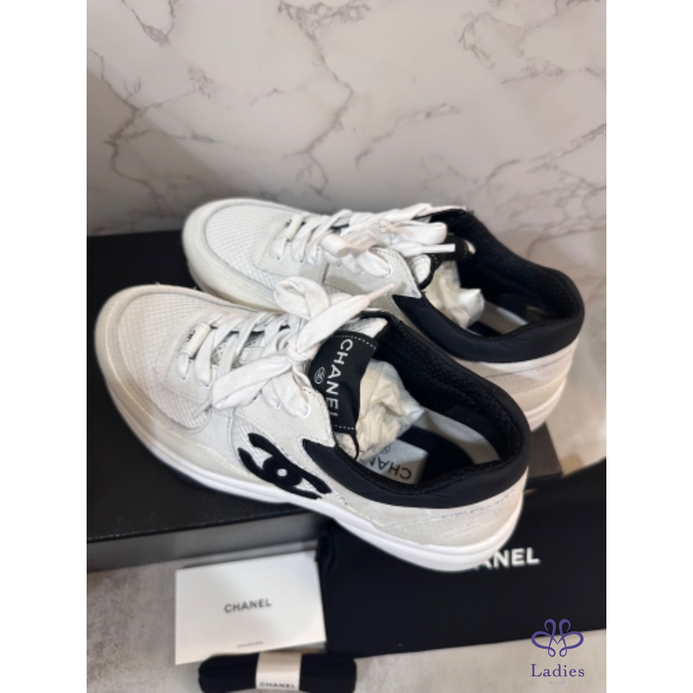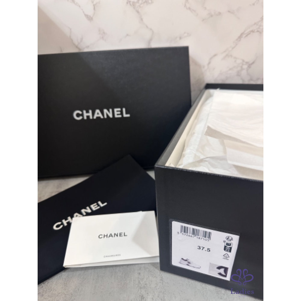 產品信息 Chanel 熊貓鞋 37.5號 全新 專櫃原價41400+運費 尺寸37.5號 我平常穿23.5這雙可穿 這雙非常熱門 有適合尺寸請手刀購入 附:黑盒、防塵袋、黑色白色鞋帶、專櫃購證影本去個資 台北新竹台中可以面交 可郵寄、店到店、宅配