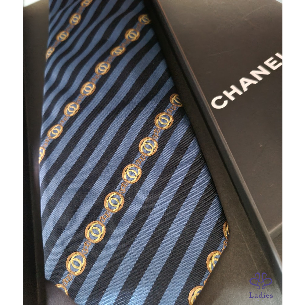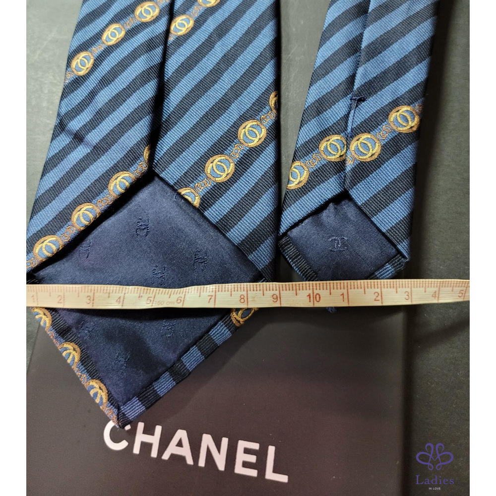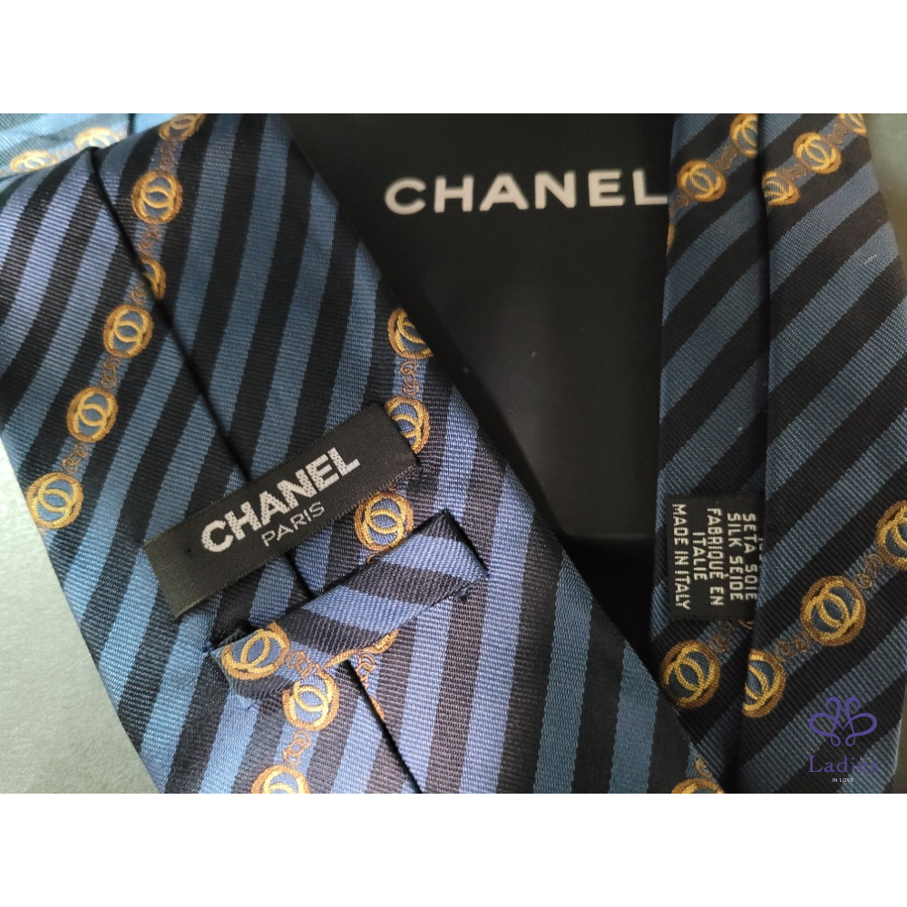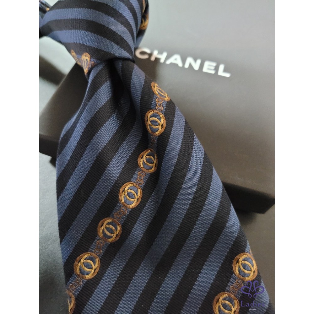 ~CHANEL 未使用品 斜條紋雙C 領帶