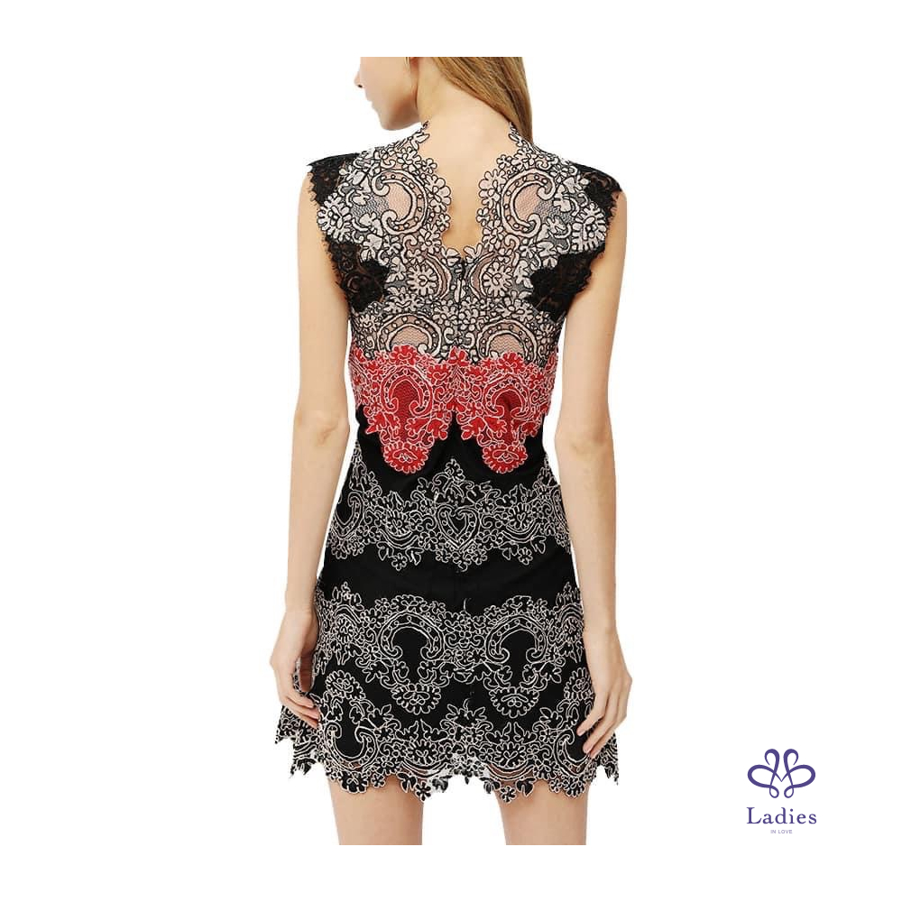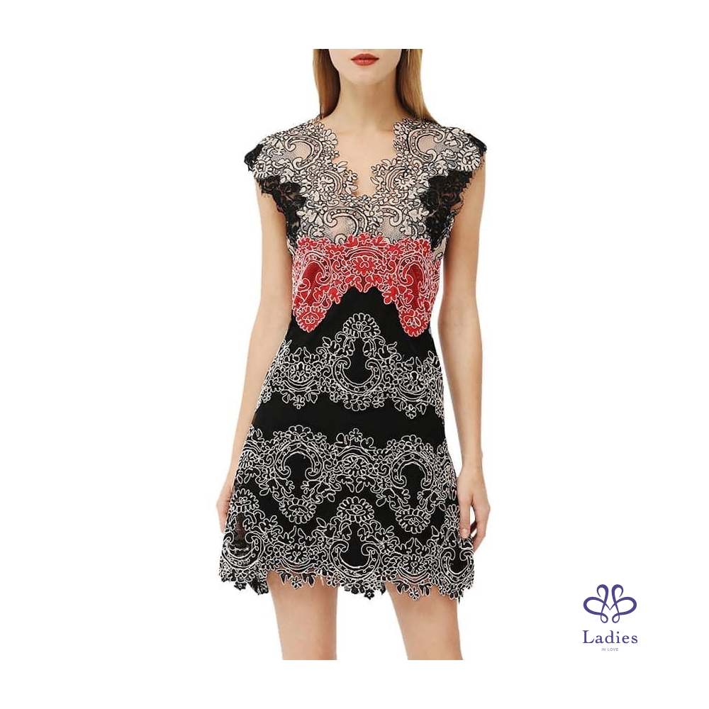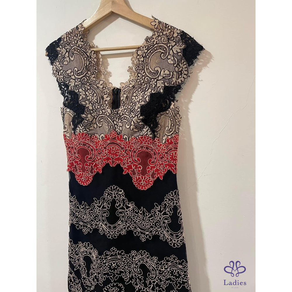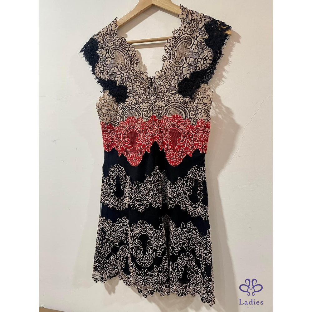 首頁 精品服飾 SANDRO 紅黑拼色蝴蝶立體刺繡蕾絲洋裝