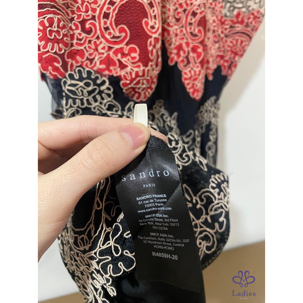 SANDRO 紅黑拼色蝴蝶立體刺繡蕾絲洋裝