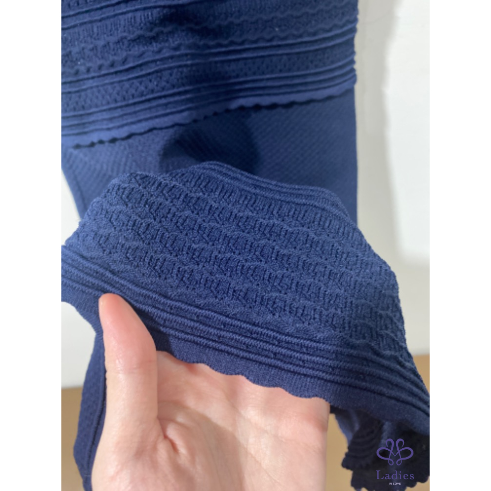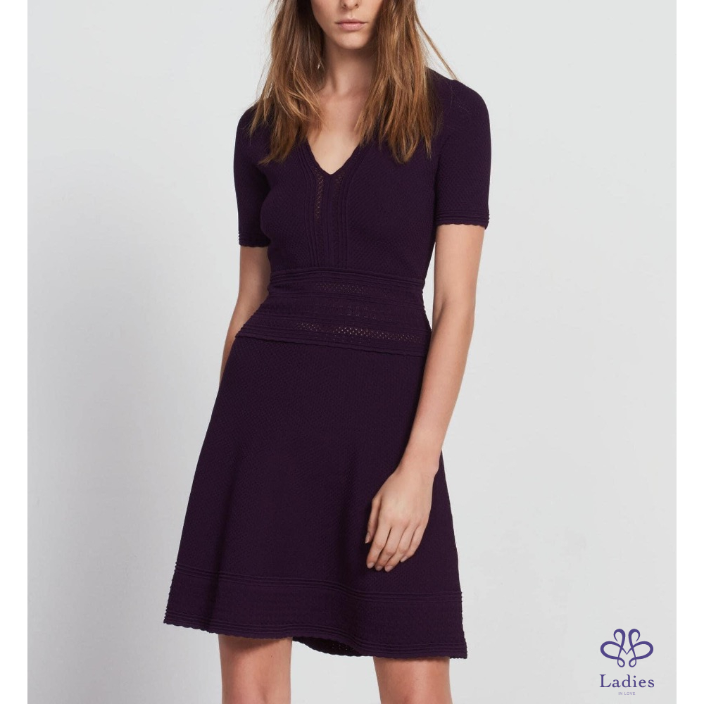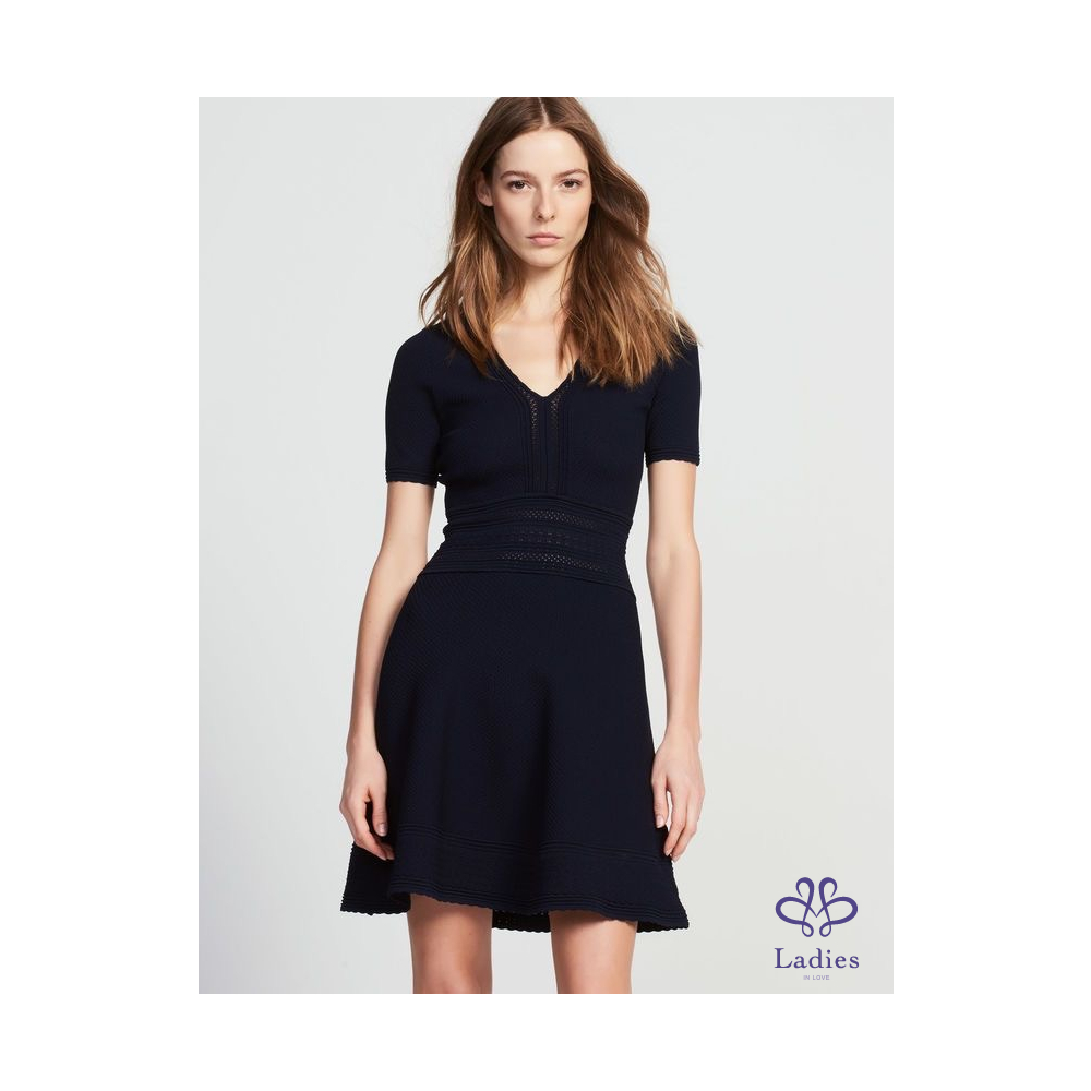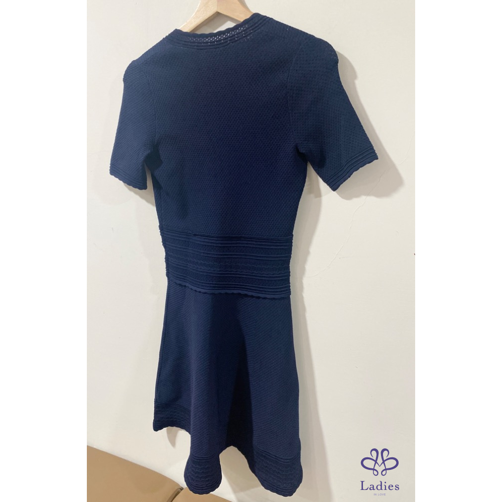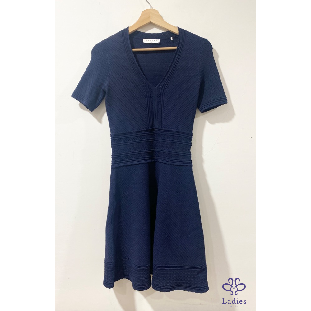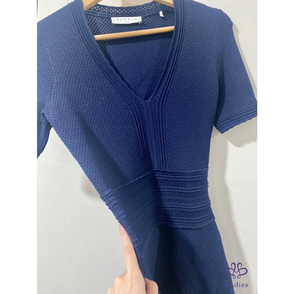 SANDRO 深藍 瘦瘦V領滾邊針織洋裝