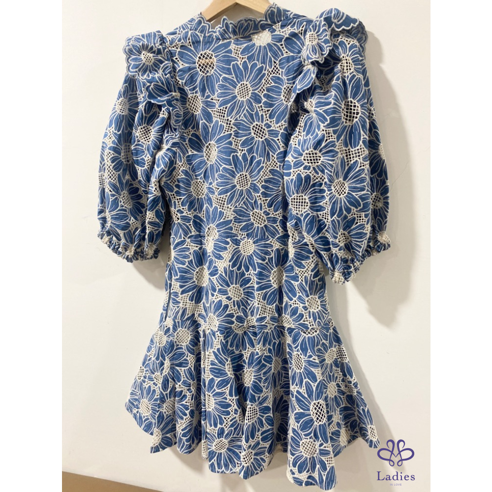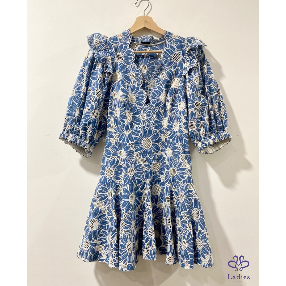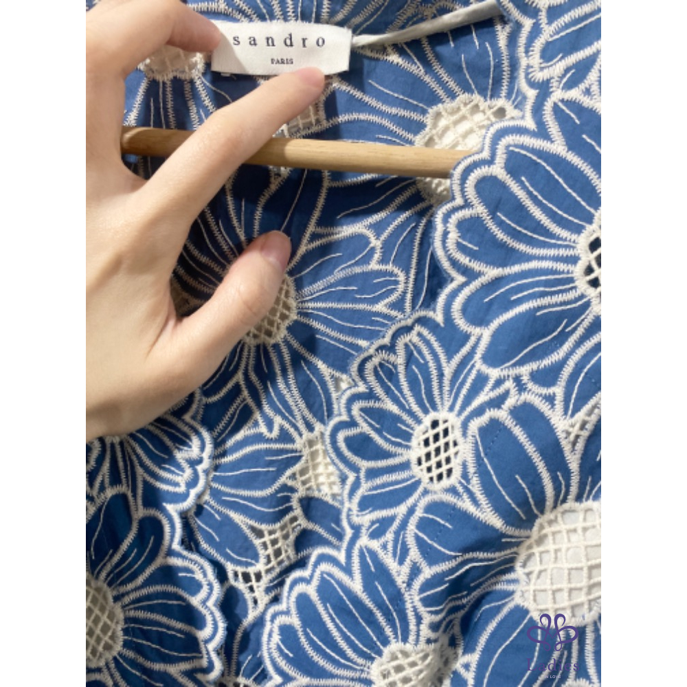 首頁 精品服飾 SANDRO 石板藍 燒花蕾絲 雛菊洋裝