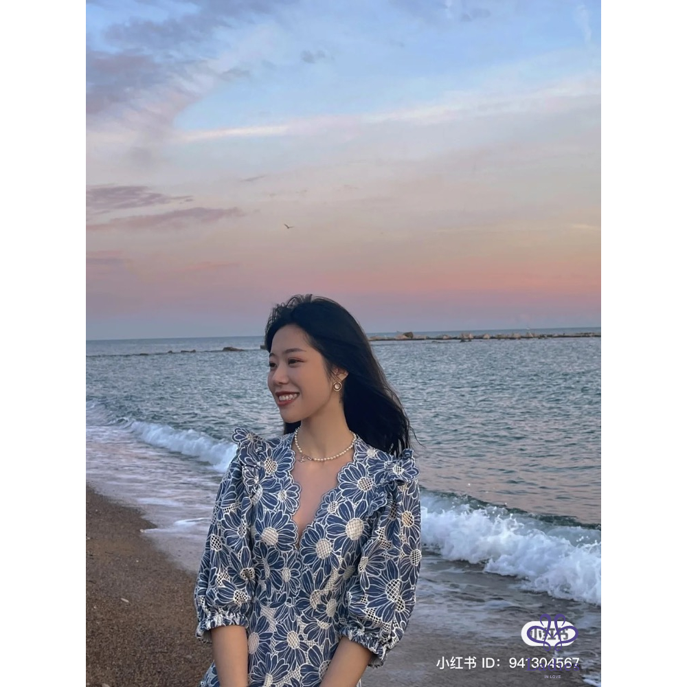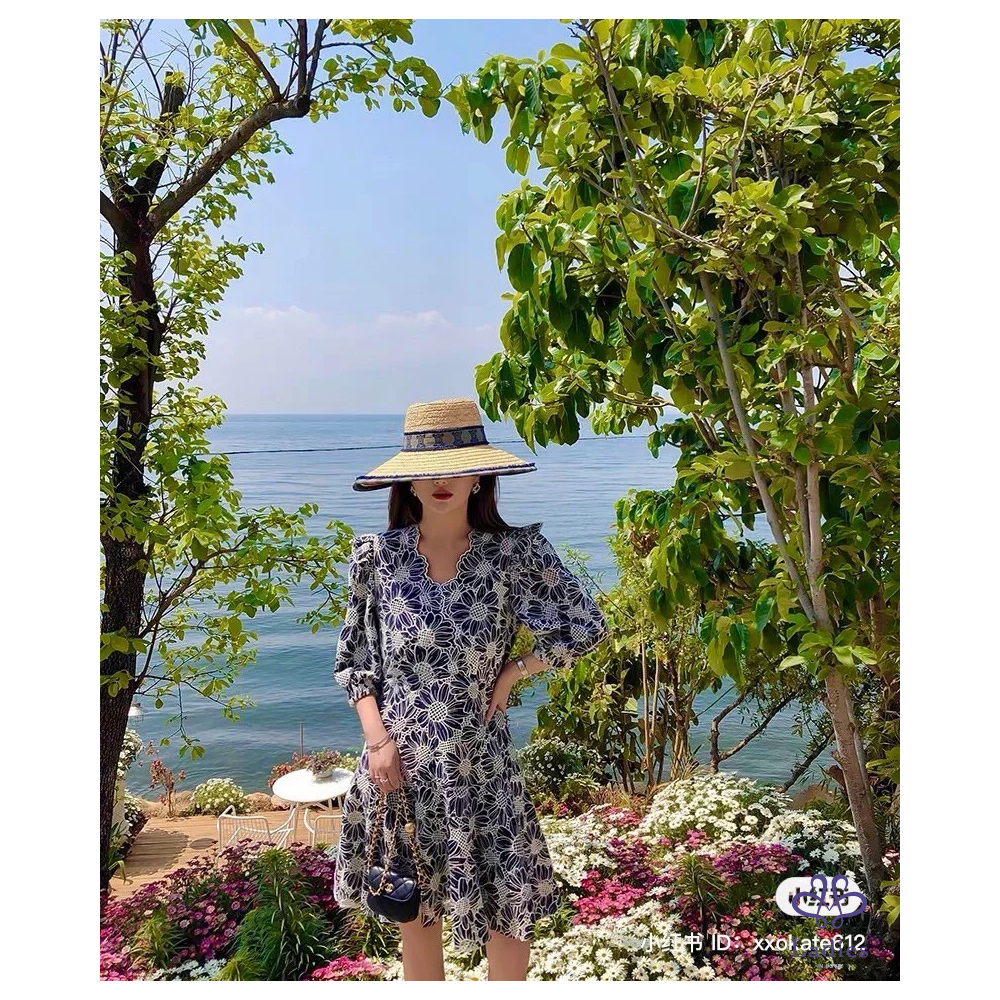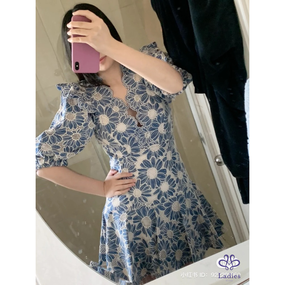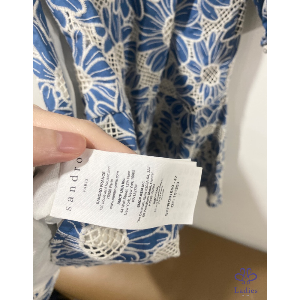 首頁 精品服飾 SANDRO 石板藍 燒花蕾絲 雛菊洋裝