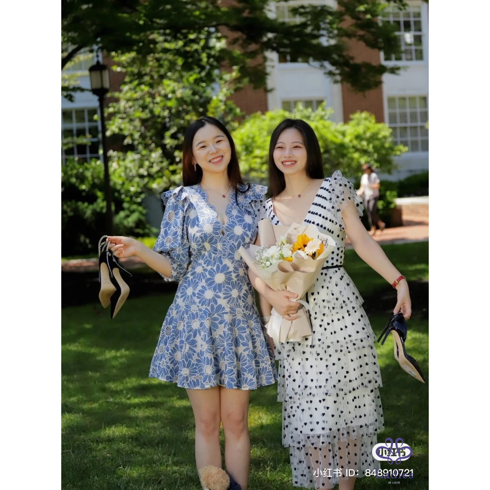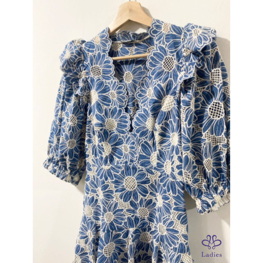 SANDRO 石板藍 燒花蕾絲 雛菊洋裝