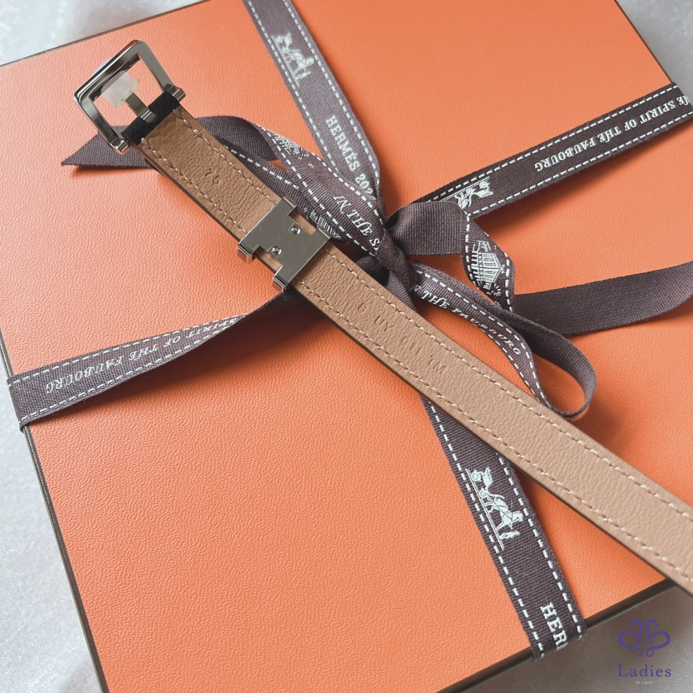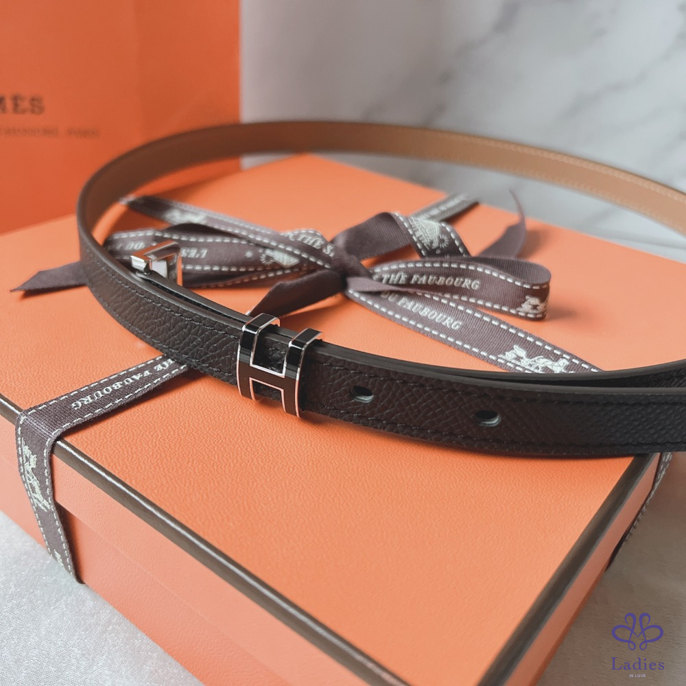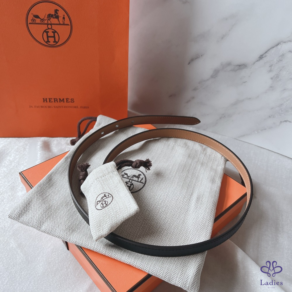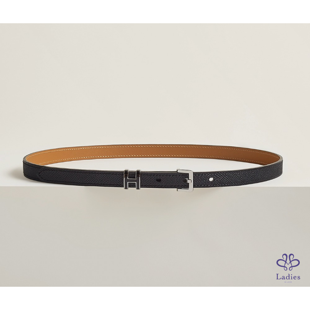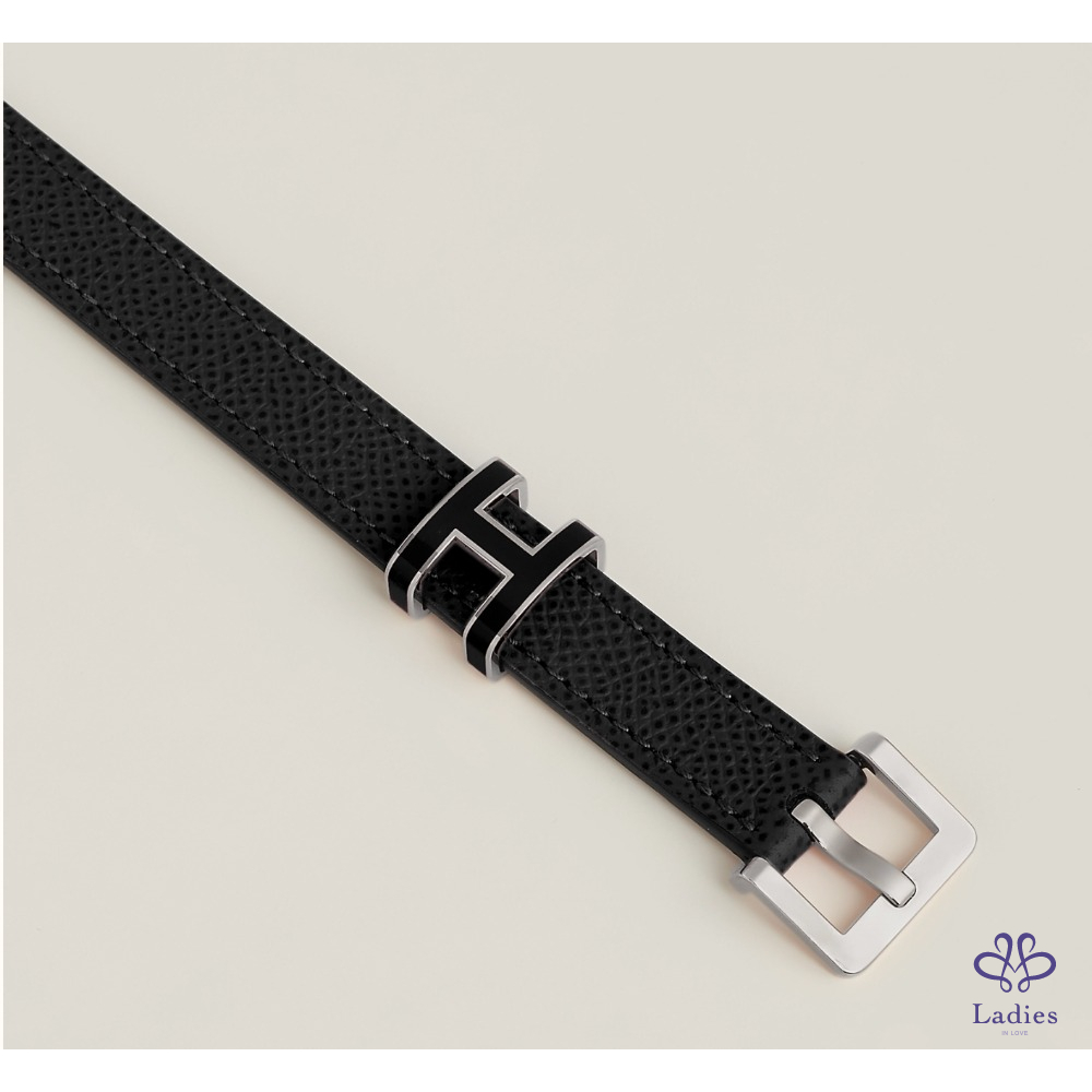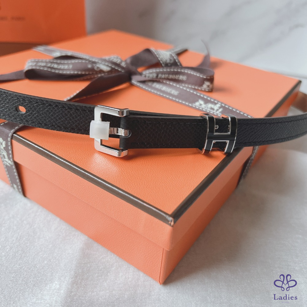 Hermes愛馬仕 Mini popH 皮帶|優雅黑銀75cm(巴黎左岸購證x全配)
