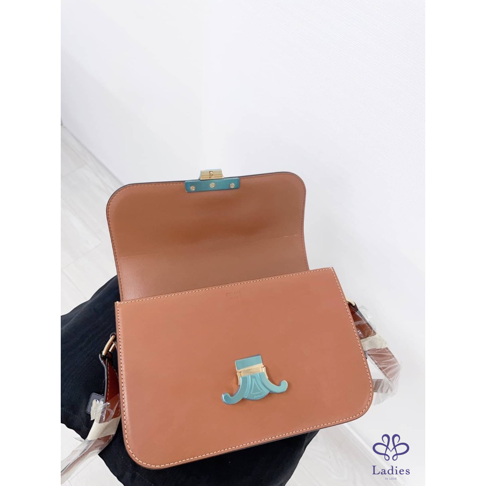 Celine 經典焦糖色凱旋金釦方包(防塵袋、冊子、吊牌)