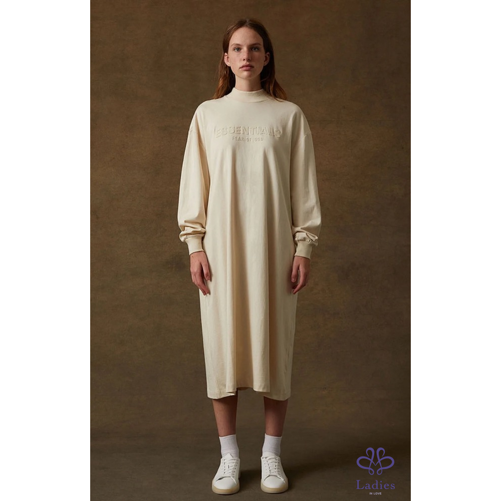 首頁 精品服飾 全新 Essentials 奶油白色寬鬆長洋裝,落肩款,有口袋 (寬鬆款S-小L可穿)