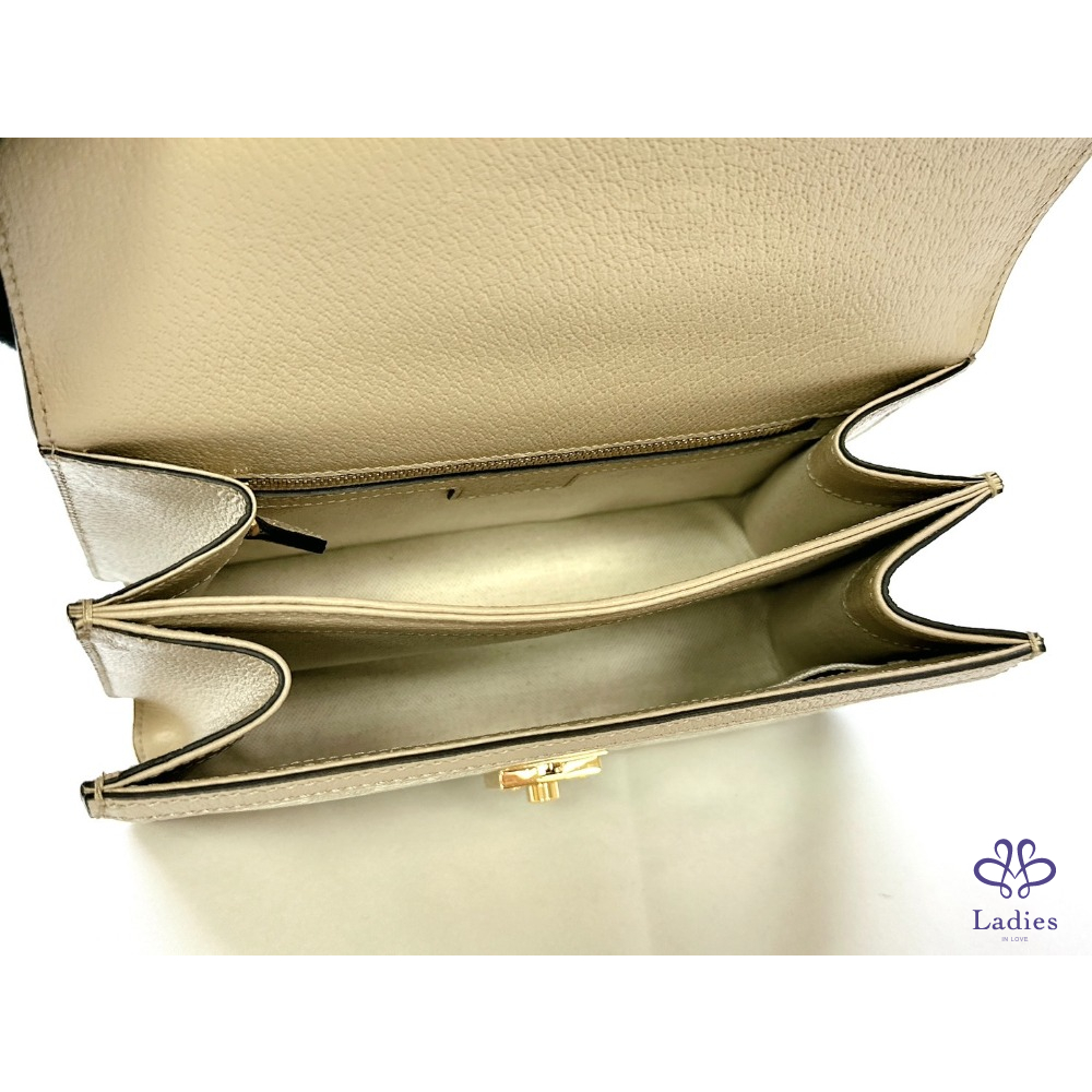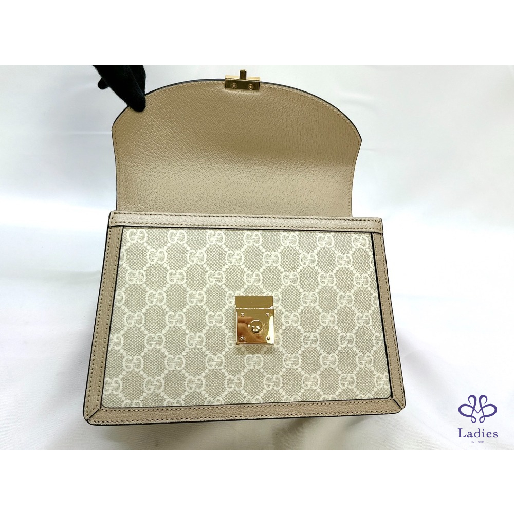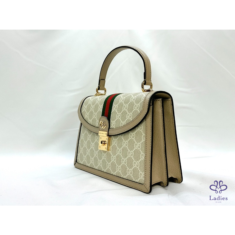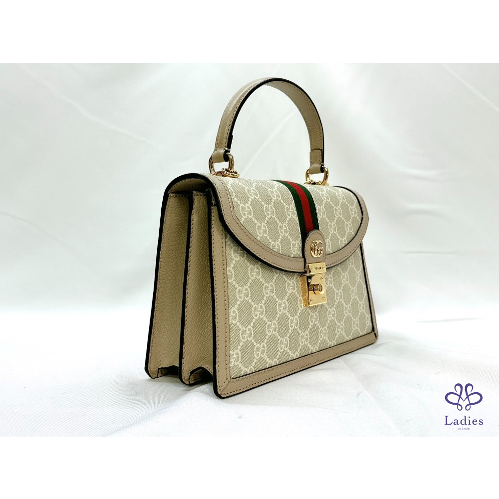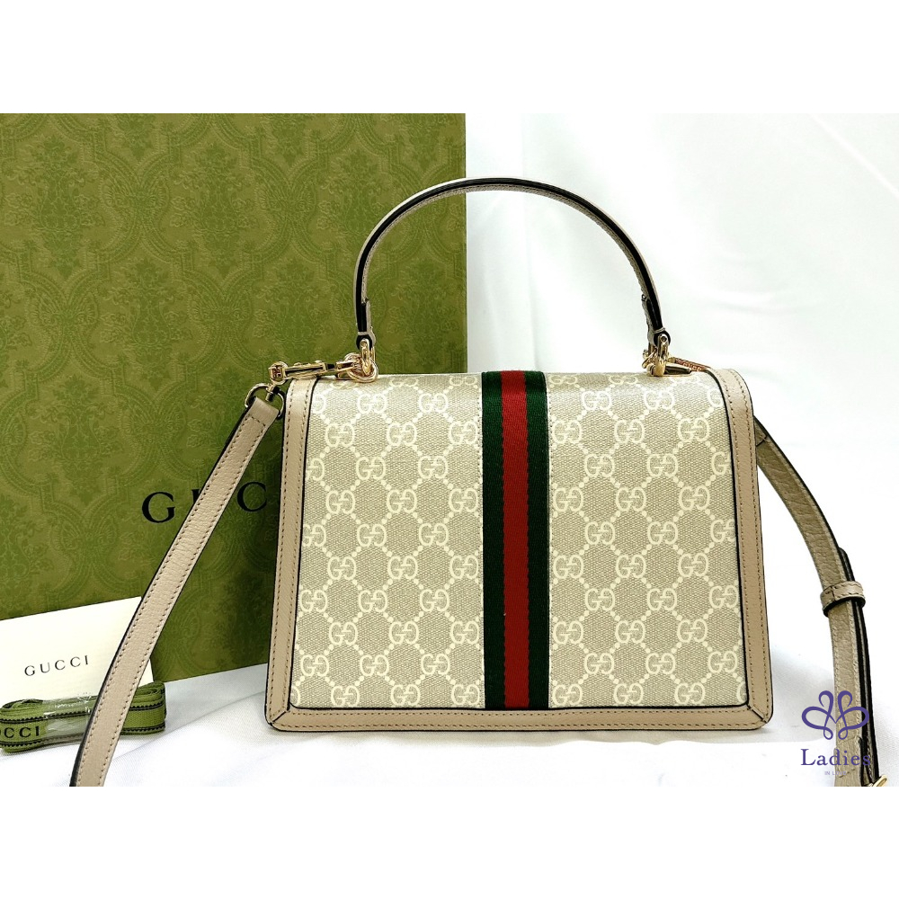 產品信息 【GUCCI 全新Ophidia系列織帶手提包】 #櫃上價約9萬 #離櫃全新閒置半價即可入手 ????米白色GG Supreme帆布搭配燕麥色皮革滾邊 視覺清新脫俗非常融入都會日常☕ 扣鎖掀蓋式開合 雙隔層大容量非常好用 ????整體包況9成9新,二手商品均有正常使用/存放痕跡 ????型號:651055 ????尺寸:25x17.5x7cm ????附件:原廠盒、說明書、緞帶