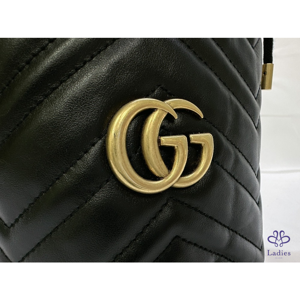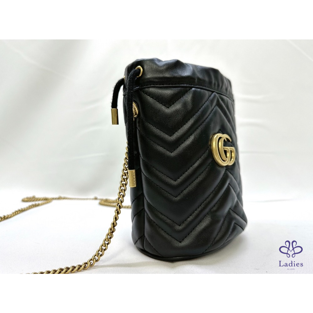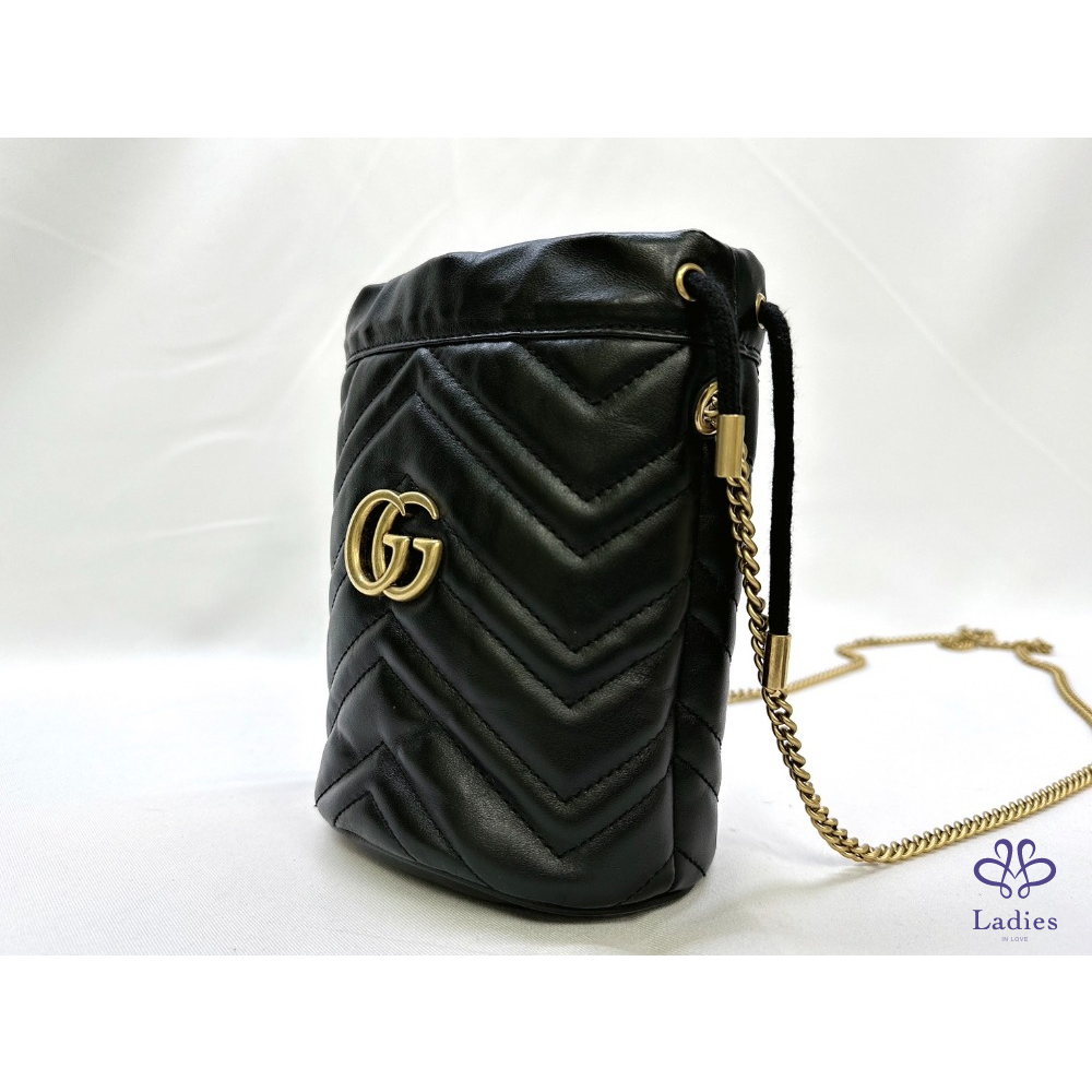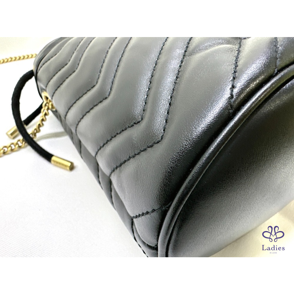 推出chevron圖案黑色絎縫皮革迷你水桶袋