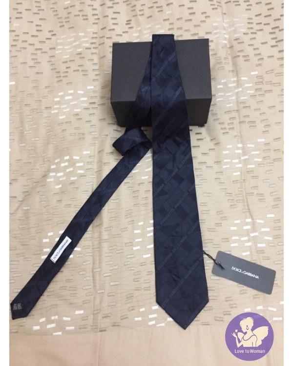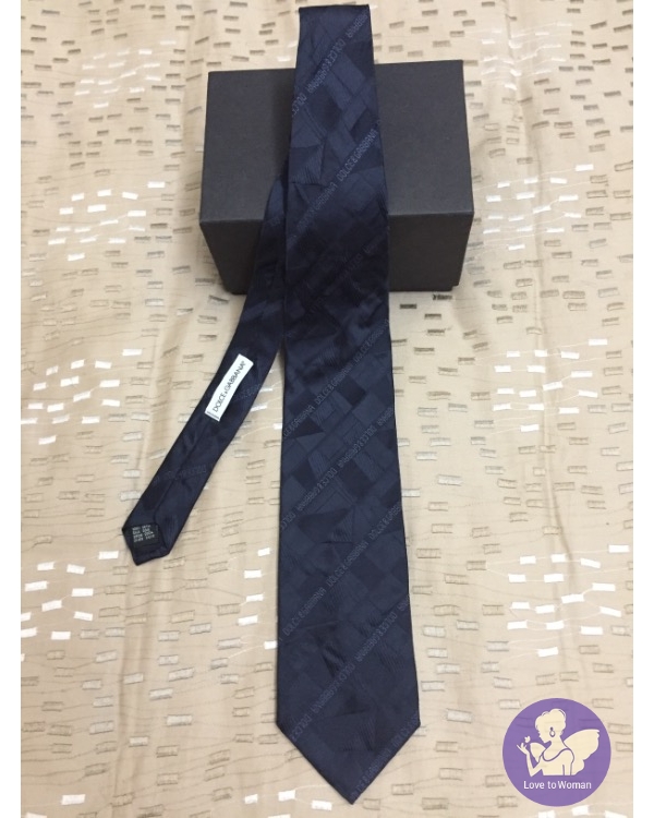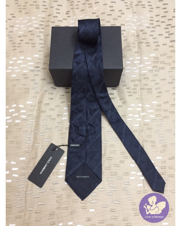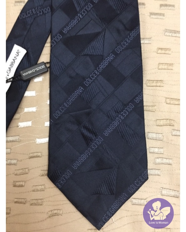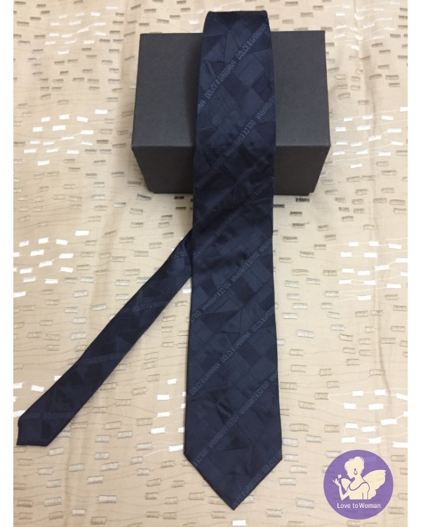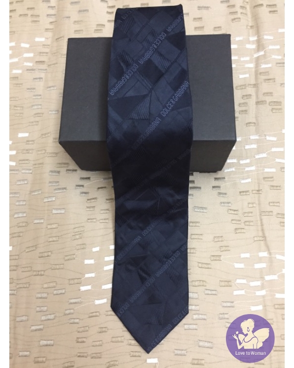 DOLCE&GABBANA深藍色立體格紋字母領帶 購於專櫃購價約8千多全新未使用吊牌在