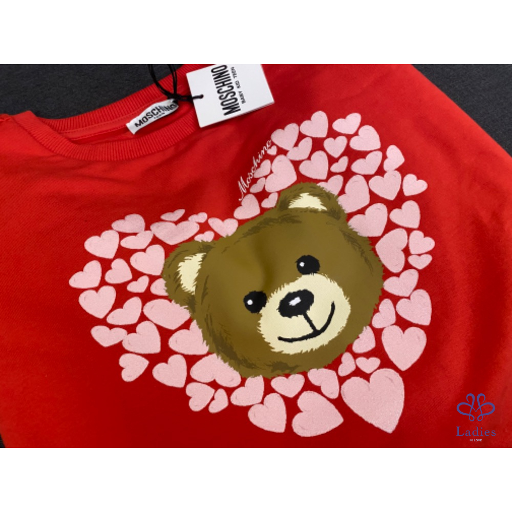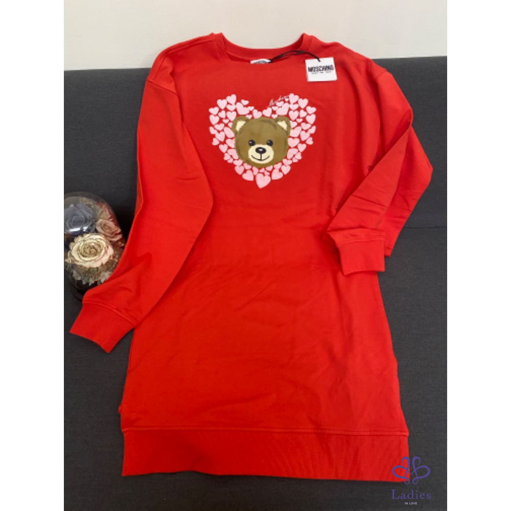 Moschino 秋冬新款小熊衛衣洋裝,被愛心圍繞的小熊超級可愛,這件紅色超級美又顯白,內裏是舒服的刷毛材質,喜歡的姐妹不要錯過了。