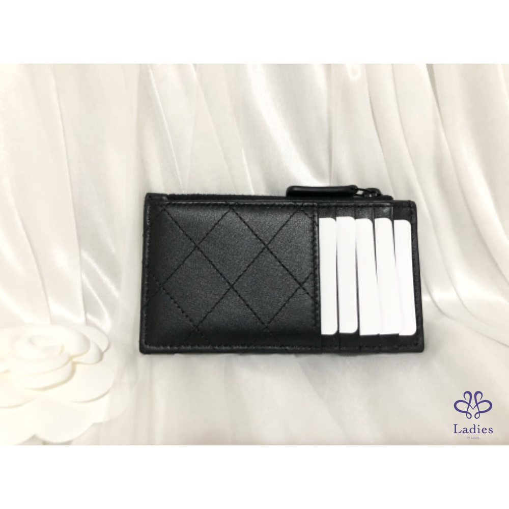 首頁 精品手錶 CHANEL 香奈兒 小香 24P so black 黑色黑扣 牛皮 一字零錢卡包 全新✨
