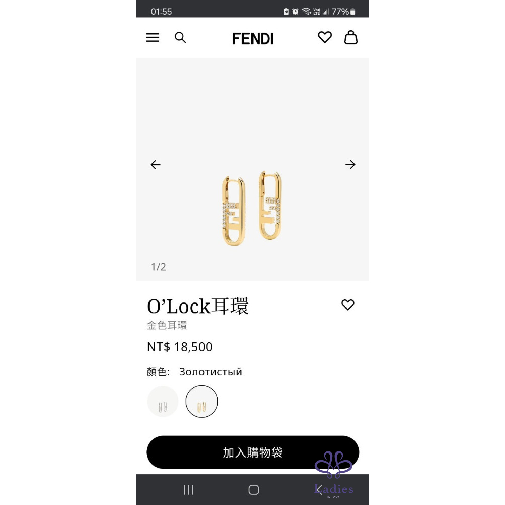 售 Fendi O’Lock Earrings 芬迪 鋯石/金色 耳針式耳環/飾品/首飾