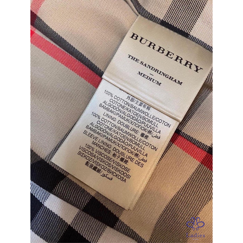 ????介紹:Sandringham 合身裁製風衣,流線形設計突顯優雅合身曲線。選用防風雨棉質 Gabardine 於英國製成,此布料由 Thomas Burberry 於 1879 年所發明,此款經典風衣適合所有季節與場合穿著,可繫上腰帶展現合身版型,或不繫腰帶搭配丹寧單品以流露休閒風尚,靈感源自 Burberry Archive 典藏設計,飾有代表性格紋領底。