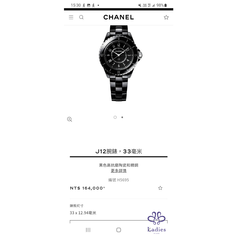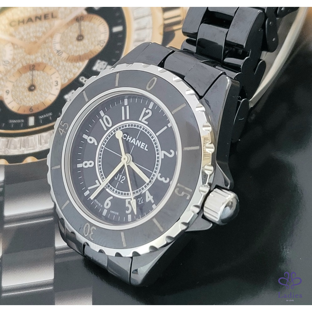 ~CHANEL J12 附原廠旅行盒 33mm 黑色全陶瓷 石英錶