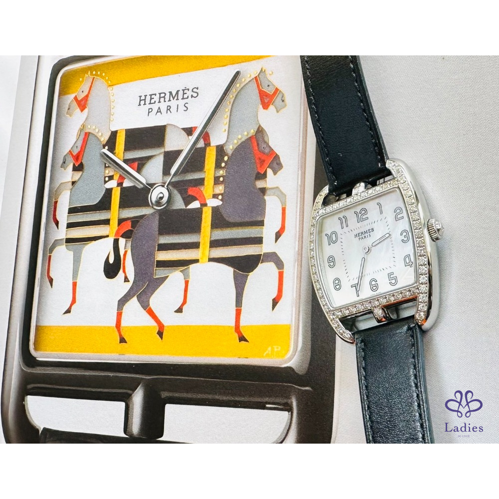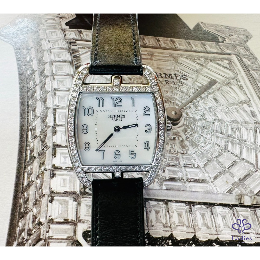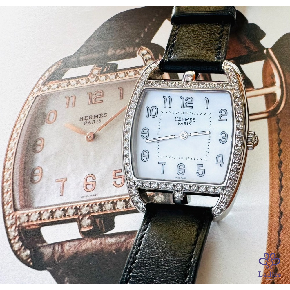 ~HERMES 原廠盒 原鑲鑽石大豬鼻子 大款 石英錶