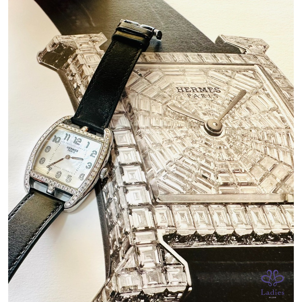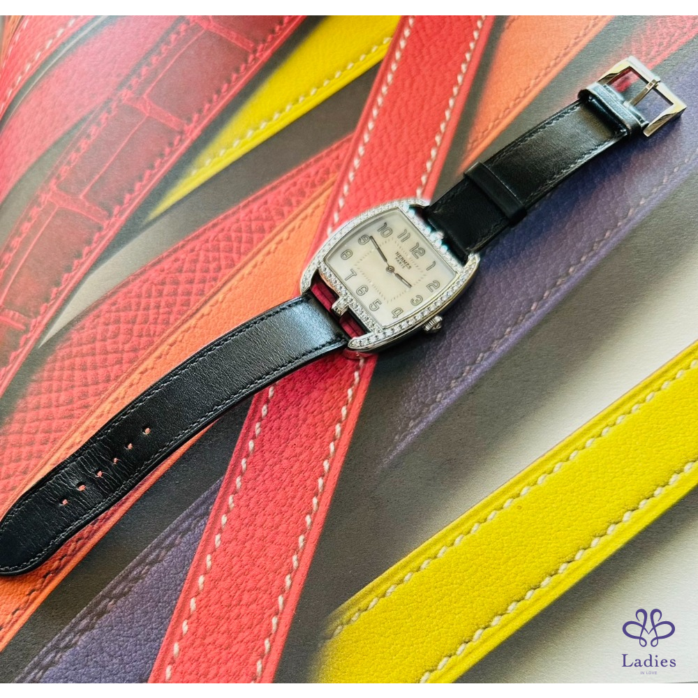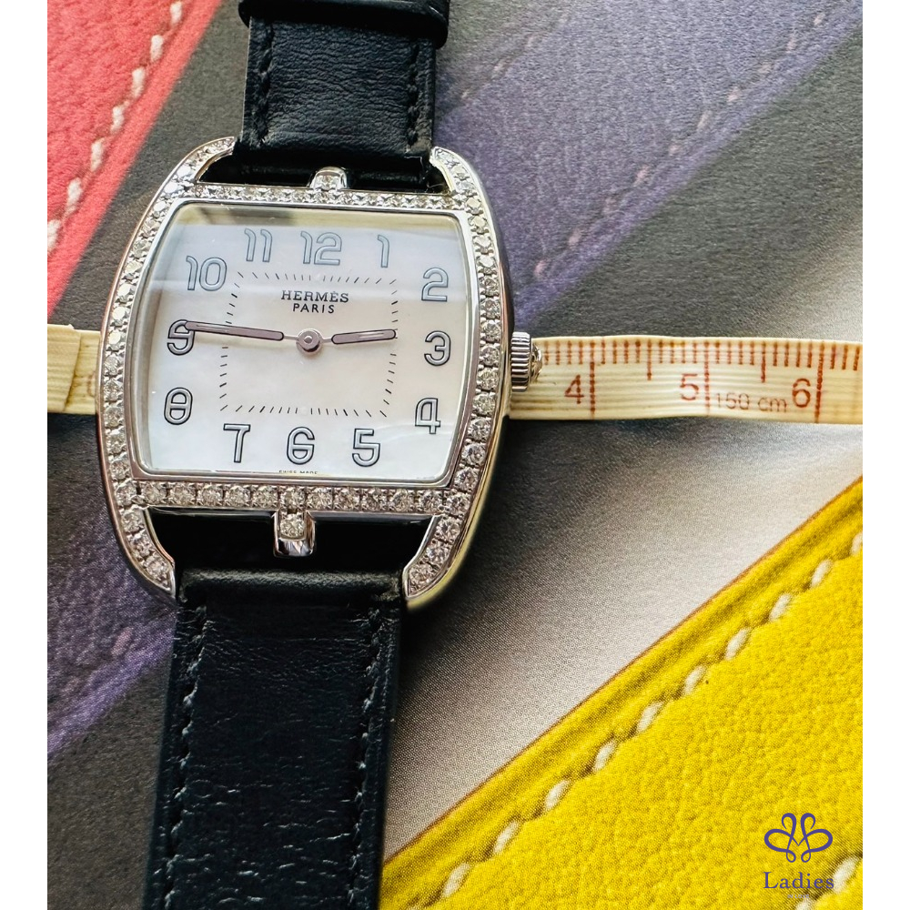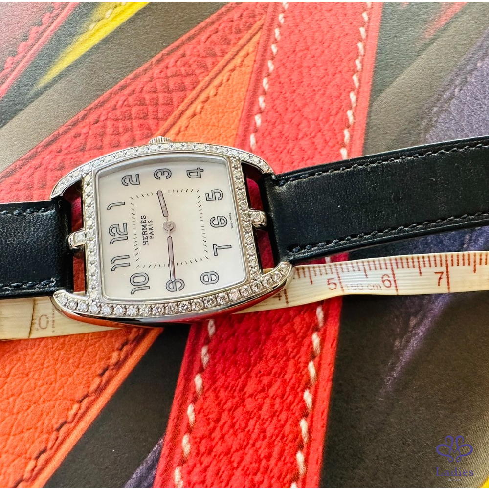 ~HERMES 原廠盒 原鑲鑽石大豬鼻子 大款 石英錶