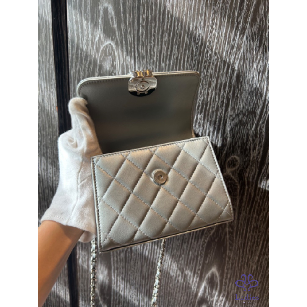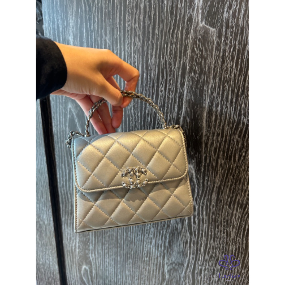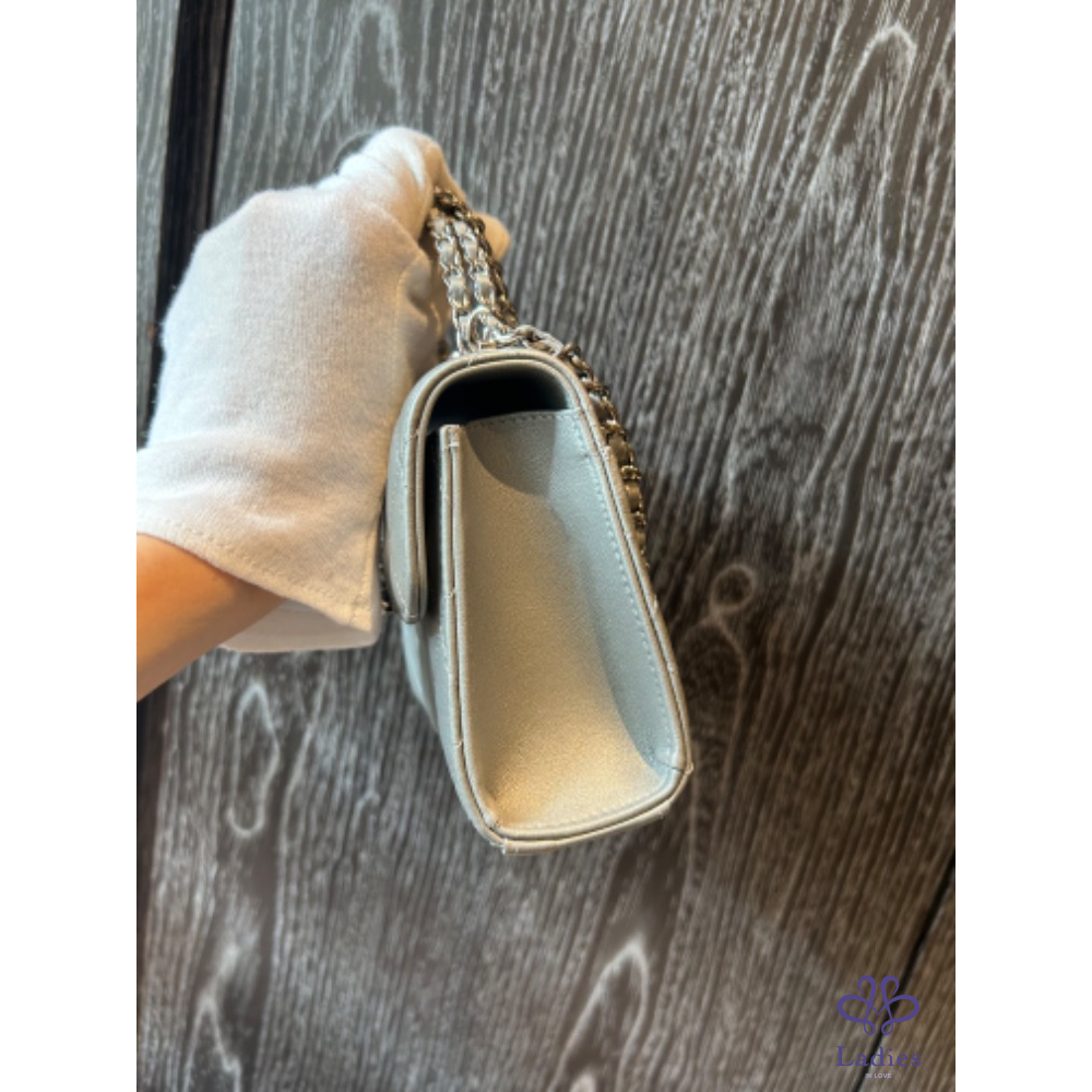 買來全新閒置,只有在家試背。非常美的銀灰色可以手提斜背。