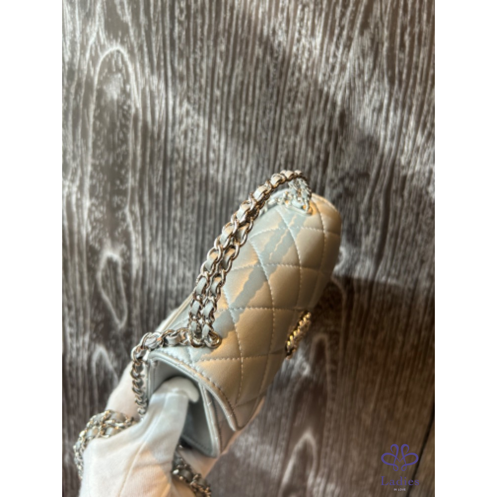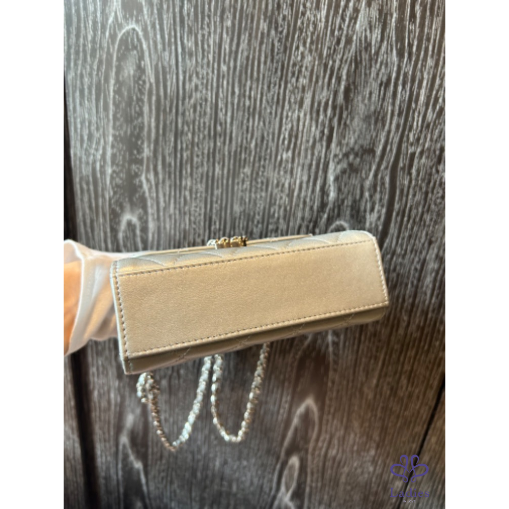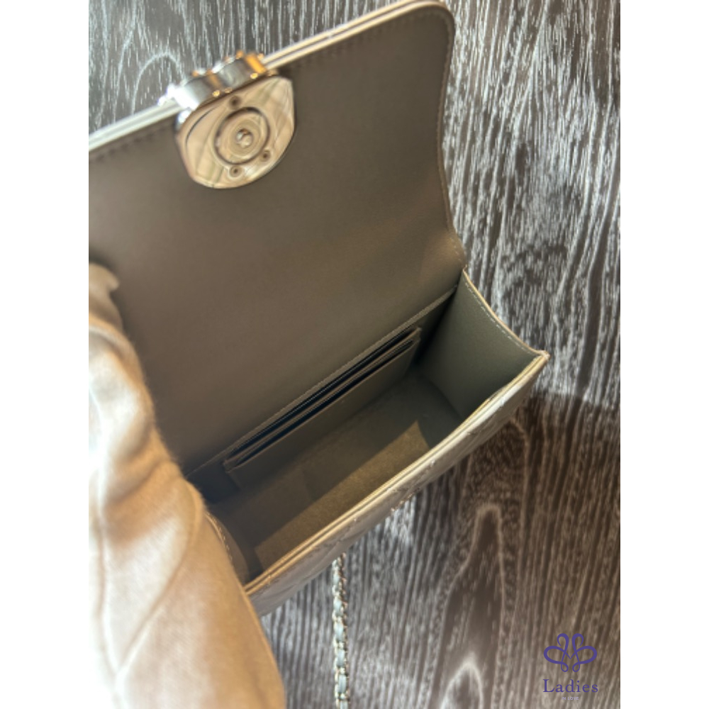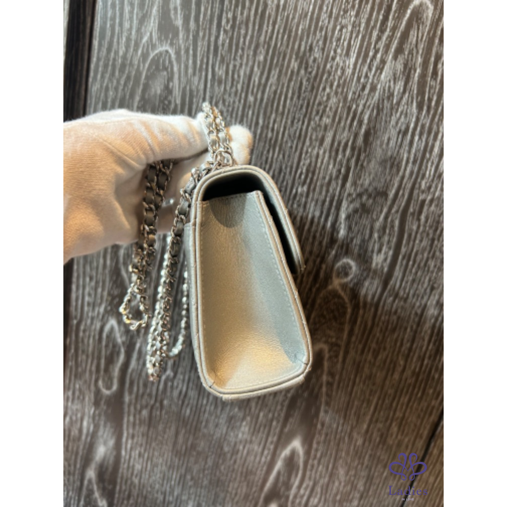 買來全新閒置,只有在家試背。非常美的銀灰色可以手提斜背。