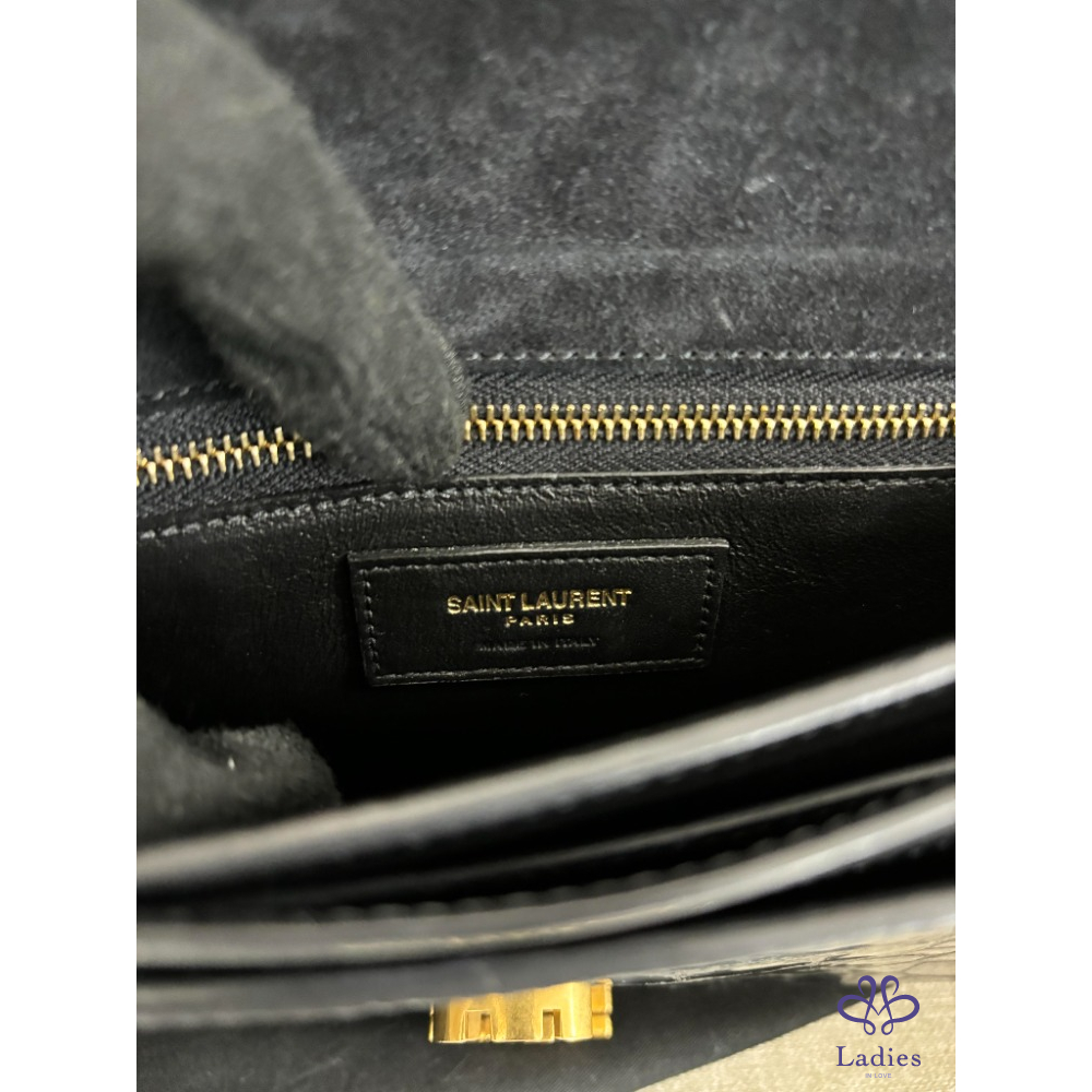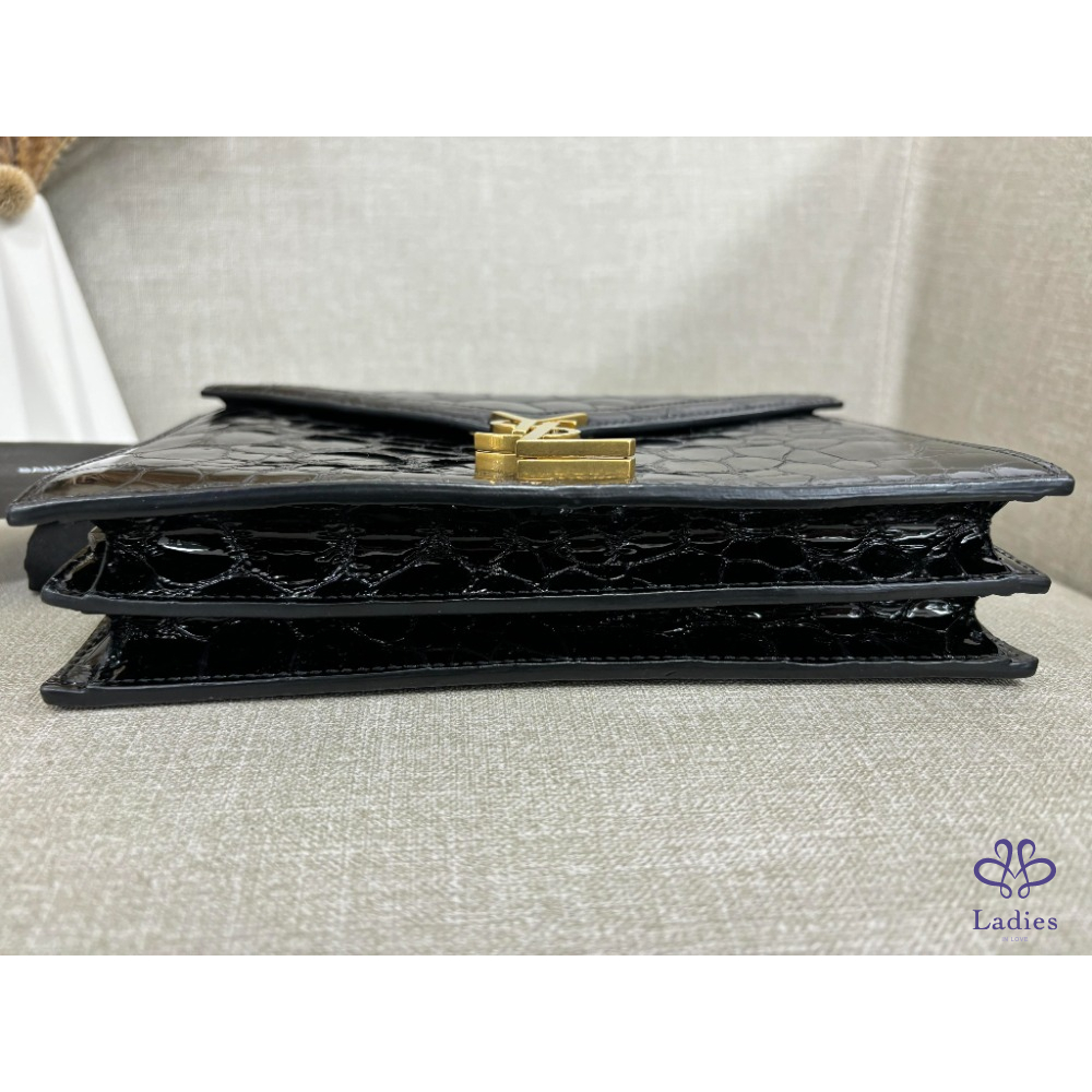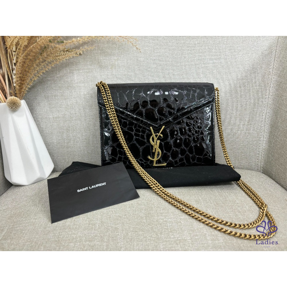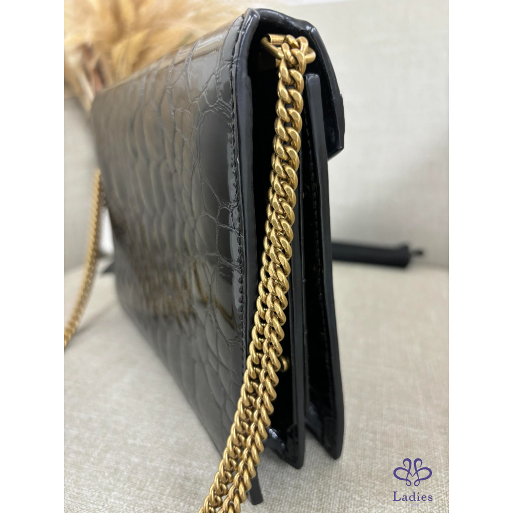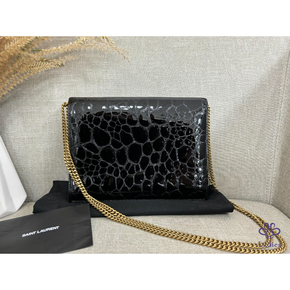 YSL 黑色漆皮鱷魚壓紋金色鍊條小包 CASSAN