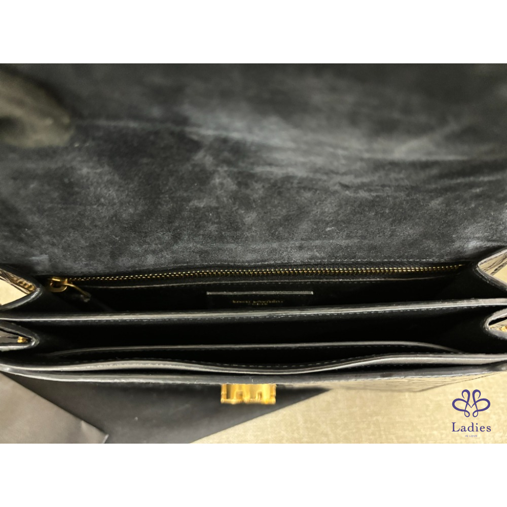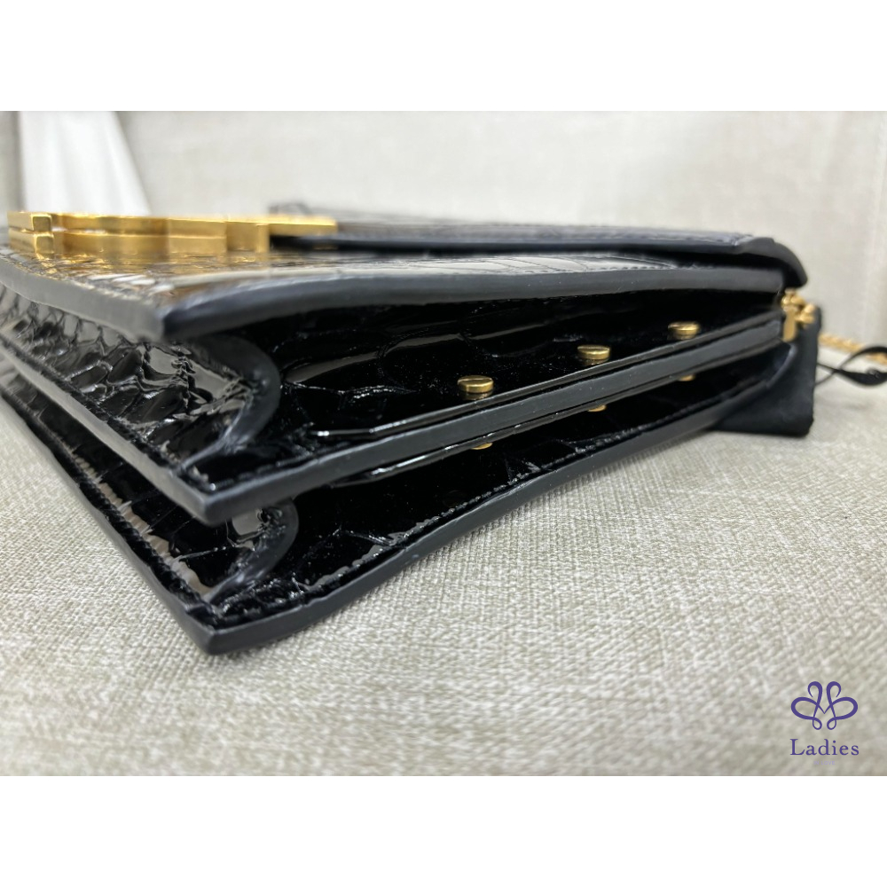 售  YSL   黑色漆皮鱷魚壓紋CASSAN金色鍊條小包